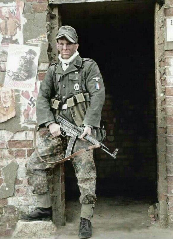 Был учтён также опыт использования гранатомётов против пехоты и гранаты стали снабжать специальными «рубашками» с насечками для увеличения количества осколков. Правда этих гранатомётов успели выпустить всего 500 штук. Однако вполне возможно, что именно такими образцами были вооружены подразделения СС, оборонявшие Берлин. Такие, как например вот этот грозный француз из 33-ей гренадёрской дивизии СС шарлемань: