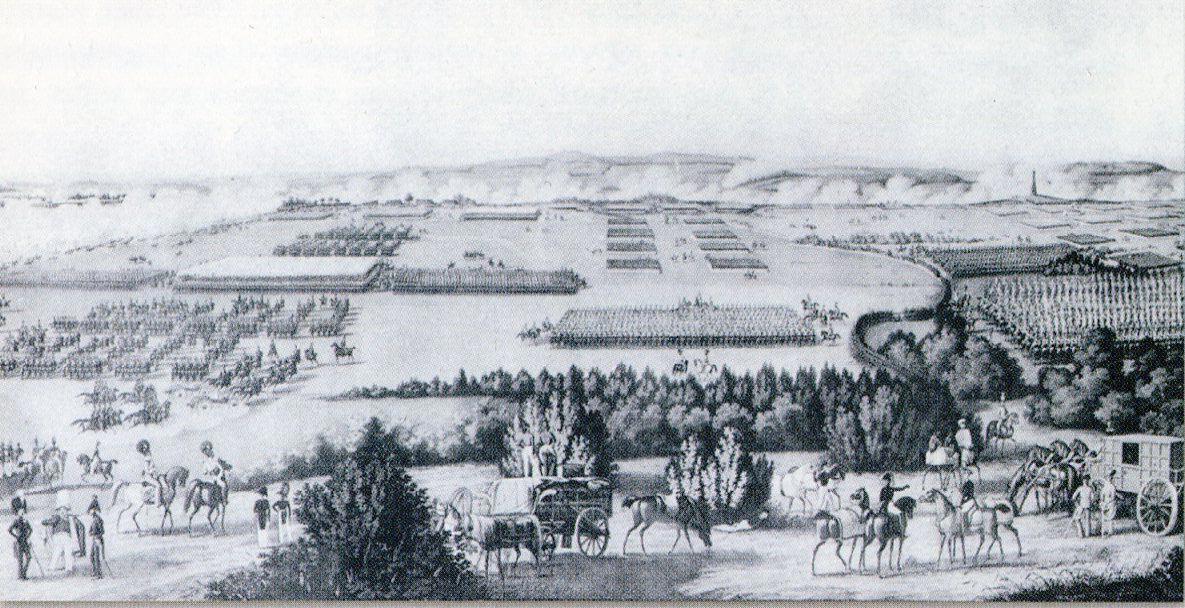Известно, что у монаршьих особ такие забавы практиковались задолго до Николая I. Английский король Яков II после восстания Монмута каждое лето приводил лучшую часть своей армии на шесть недель в Hounslow Heath (пустошь к западу от Лондона), где солдат тренировали, а офицеров обучали тактике. В числе прочего там производили имитации сражений. Летом 1687 года на этой пустоши разыграли осаду Буды, в которой принимал участие незаконнорожденный сын Якова II от Арабеллы Черчилль, Джеймс Фитцджеймс, 1-й герцог Бервик. По приказу короля "воюющие стороны" были облачены в одежды восточного покроя с одной стороны, и имперского, с другой. Чтобы посмотреть на такое диво, в Hounslow Heath приезжали придворные и привозили своих дам.