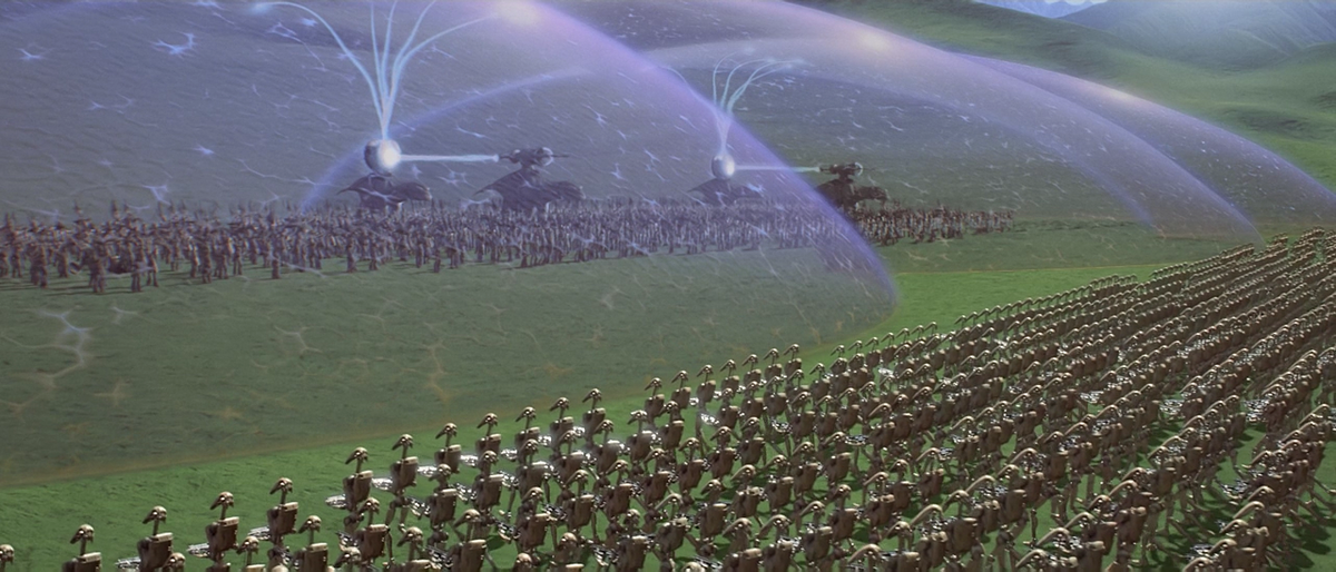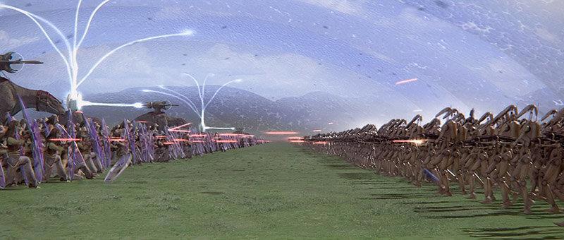 Справа войска торговой федерации, напротив ополчение гунганов