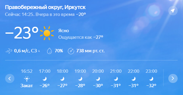 Сегодня днём всего -23. Но вы просто посмотрите на ленту прогноза: