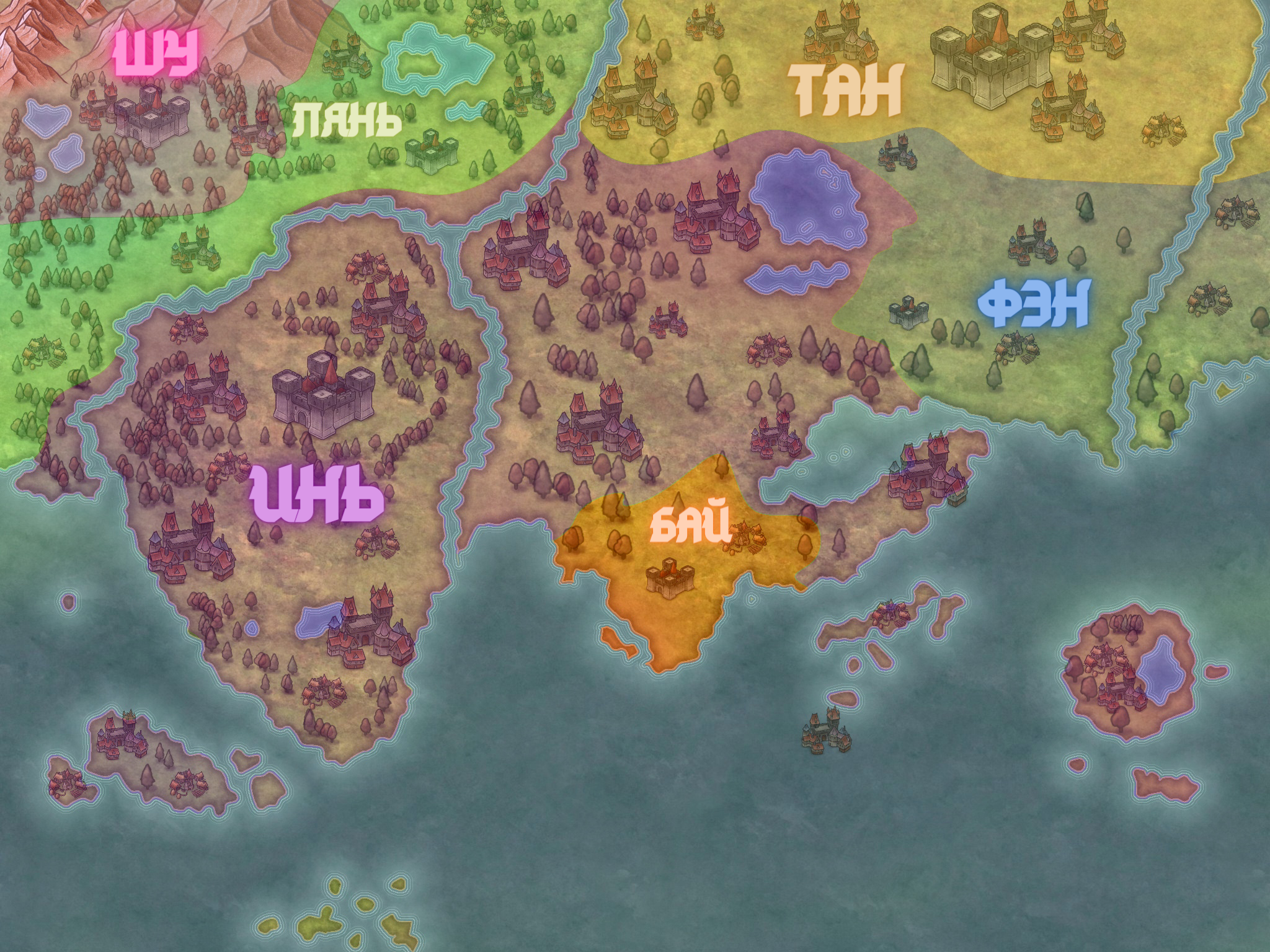 Автор: Эвил КармонаТочнее, кусочек карты. Охватывает только те страны, которые упоминались в тексте. И то бедное государство Тан жестоко обрезано — а оно не такое маленькое, как кажется)