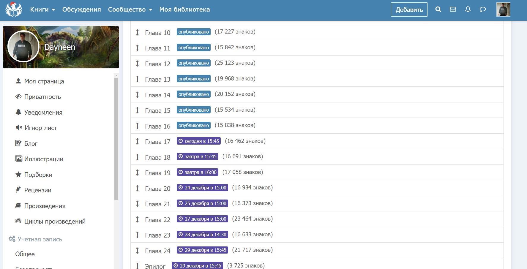 Автор: DayneenВ последнее время играюсь с автоматической выкладкой новых глав: