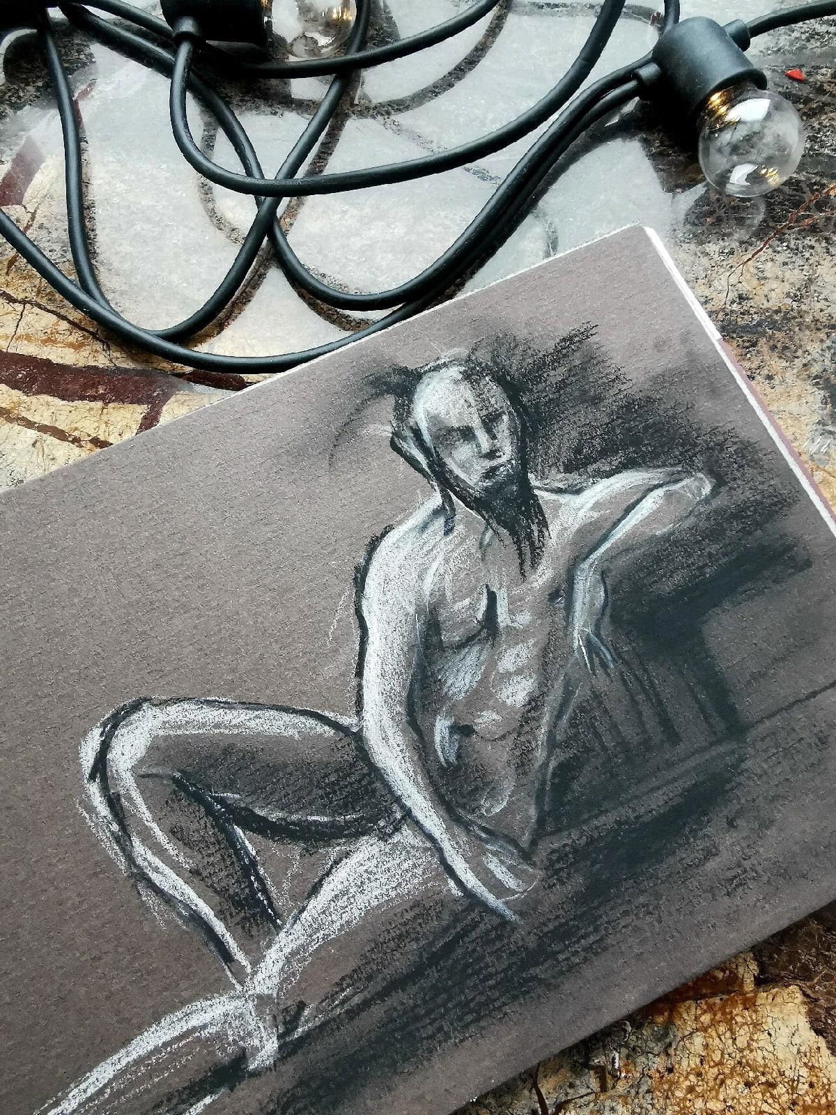 ) Но, в любом случае, мы с удовольствием порисовали в этот вечер (под винишко, печеньки и джаз). Модель от винишка отказался, говорит, вредно. Может, это ему вредно, а нам точно на пользу :)))