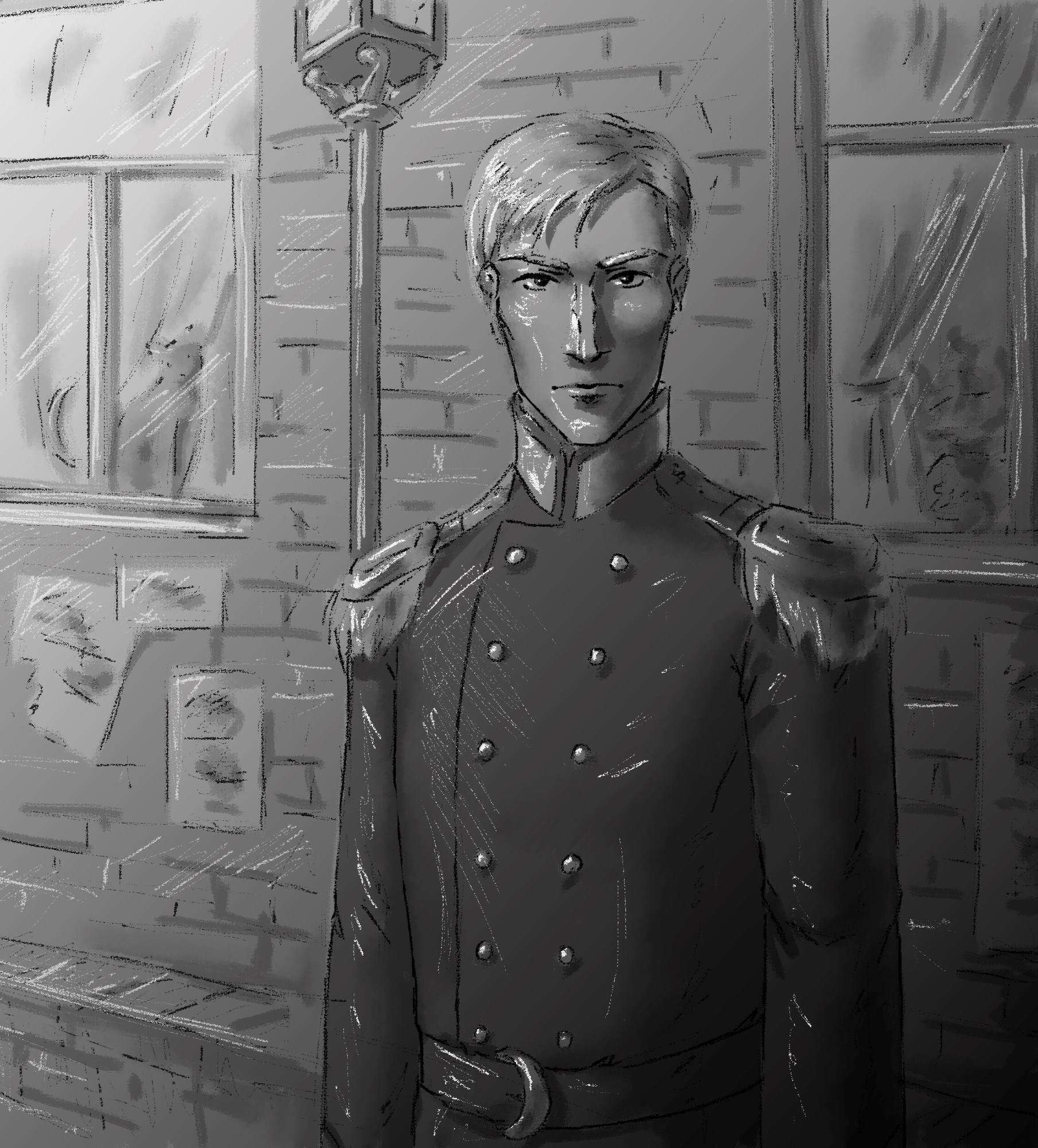 А вот Терри, в отличие от своей кузины, в новой главе книги про хитрые иллюзии, которая была недавно опубликована, оказался в неприятной компании человека, которого он боится и искренне, с полной самоотдачей, ненавидит и даже не прочь свалить на него всю ответственность за все-е-е свои проблемы. Замечательная Demi Urtch нарисовала этого прекрасного господина. Вот он, весь такой аристократ, гвардеец и просто красавец)))