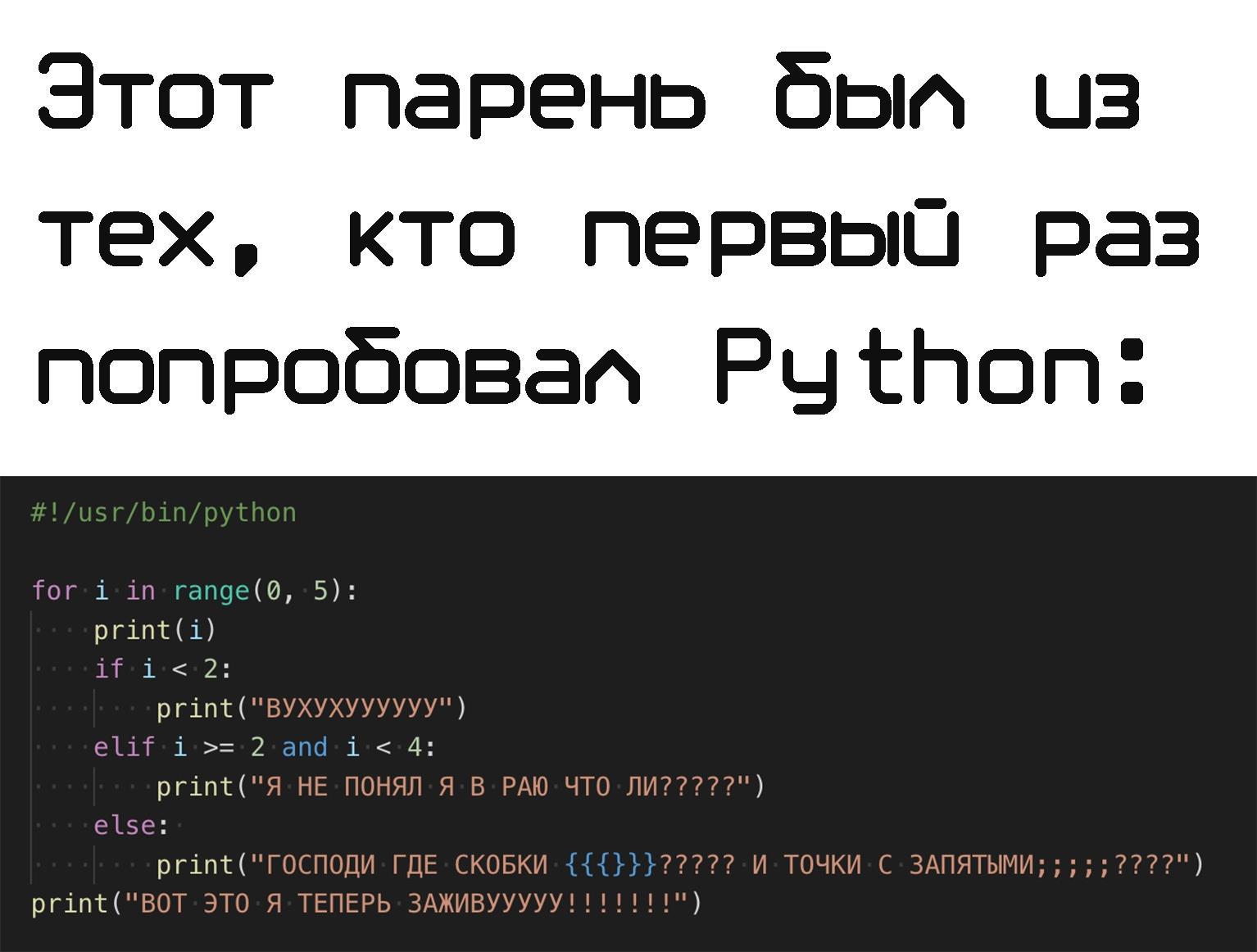 ...И я ему говорю: "Ты точку с запятой забыл в 72-й строчке", а он мне: "Это Python, дебил", а я ему беру и меняю разрешение на ".срр"