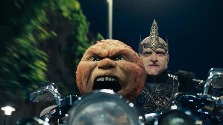 Тут же неплоха обыграна сценка из Терминатора с мотоциклом. Кощей потерявший голову и Колобок отбирают у «бабы бородатой» мотоцикл со словами: «Мне нужен твой мотоцикл!». Дальше они колесят по Москве в поиске Ивана и остальной гоп компании, но для начала находят голову Кощея.