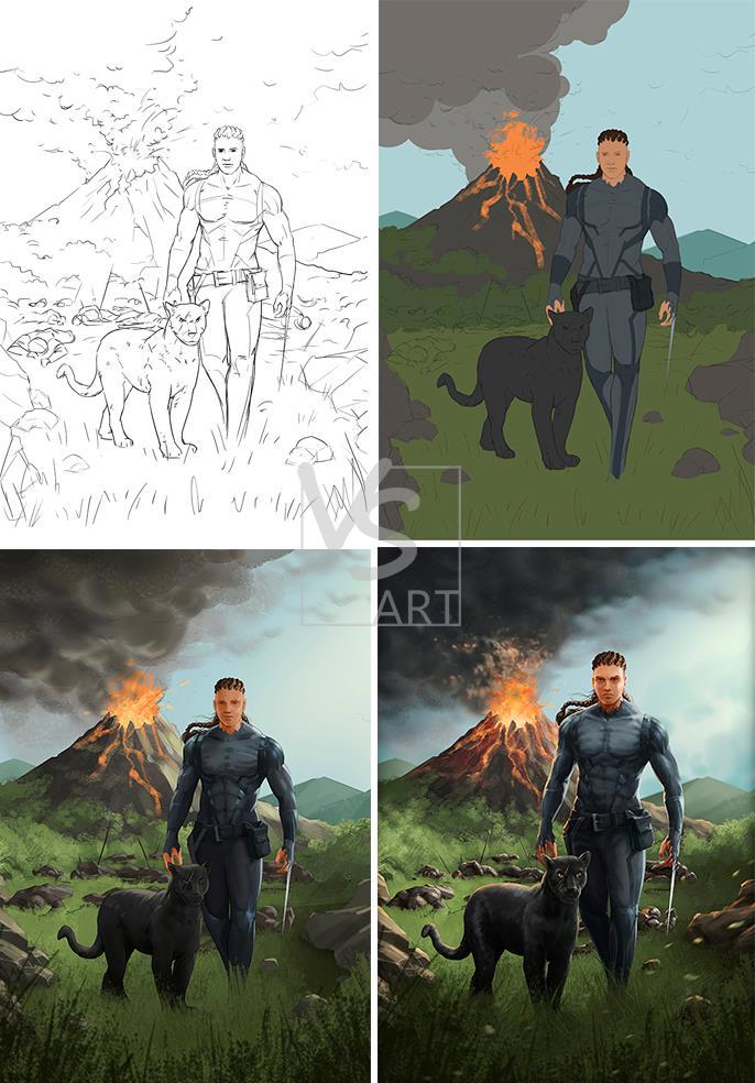 Автор: Салихов ВасильТретья обложка трилогии "В эфире". Эволюция героя неизбежна. И вновь та же композиция, но с животным арт становится живее. Хронология создания третьего арта для книги "Боги Авроры":