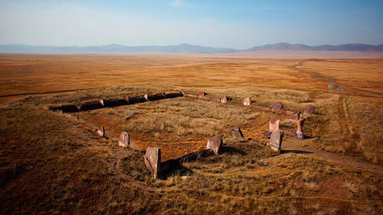 Оцените, как качественно подчистили. Без таблички и не догадаешься, что здесь было грандиозное сооружение, сделанное нашими предками. Полагаю, если оставшиеся пока вертикальные камни вдруг исчезнут, то никто и ухом не поведёт – раскопки закончены – забудьте. Потому, как это место сейчас охраняется законом и больше никем. Нет, разумеется, для местного музея сделали маленький настольный макетик. Без соблюдения пропорций, кстати. Но зачем же сам курган было уничтожать? И ведь так археологи поступают ВСЕГДА! То есть раскопки любого кургана означают его уничтожение. Получается, что если музейчик местный вдруг сгорит вместе с макетиком, то не останется ничего, что смогут увидеть наши потомки. Единственное, что переживёт пожар – мантра про диких кочевников! Преувеличиваю? Нет, ребята. Всё именно так и обстоит.