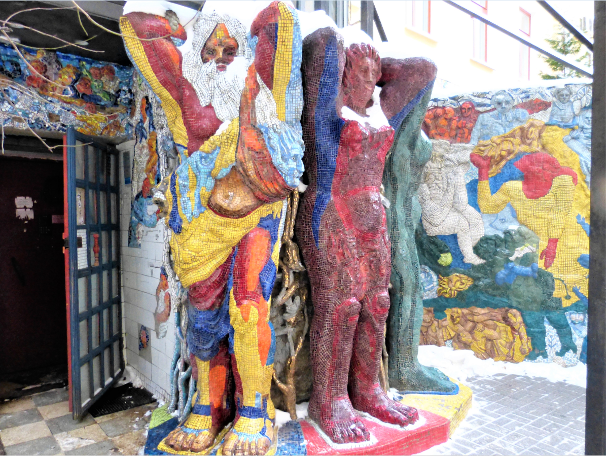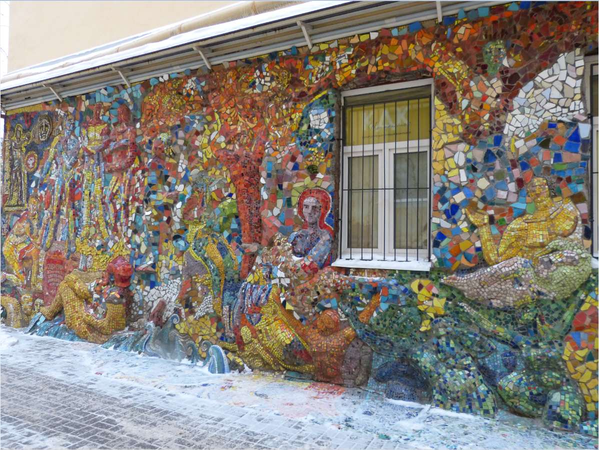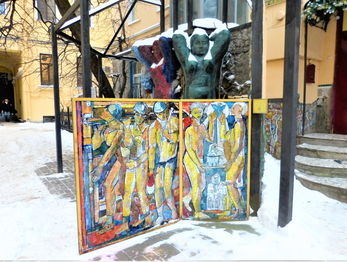 Но приятнее всего было зайти в Мозаичный дворик между набережной Фонтанки и улицей Чайковского, творение художника Владимира Лубенко и его учеников из Малой Академии искусств. Это как раз то, что доктора прописали для Серолюбова!