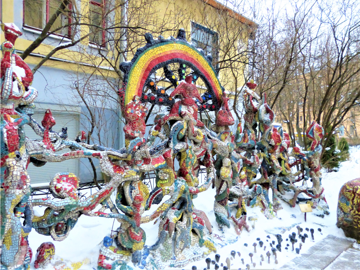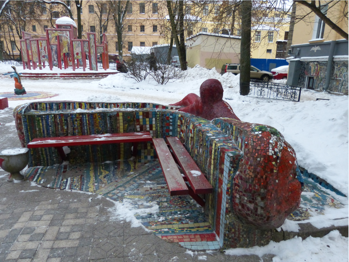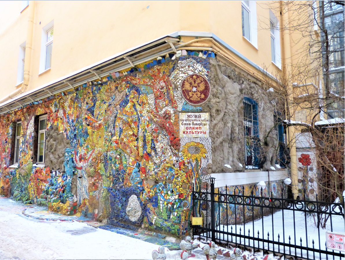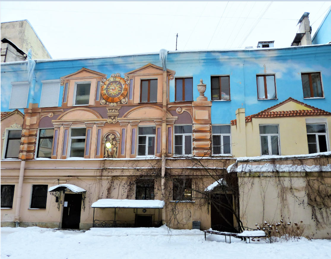 Всё такое яркое, на грани китча. Но оно украшает городскую среду, а не уродует! К тому же находится во дворе, не претендуя на сравнение со строгой питерской архитектурой.