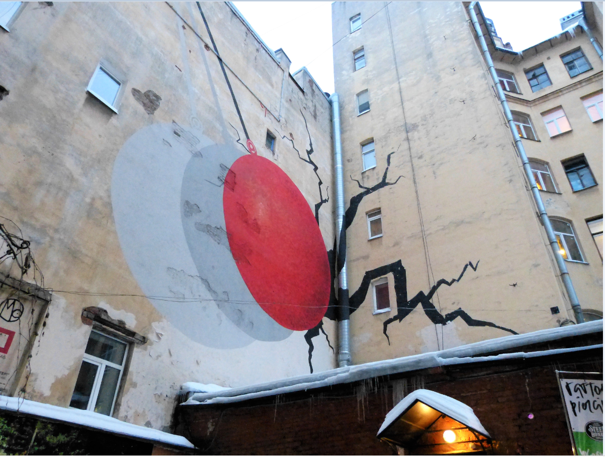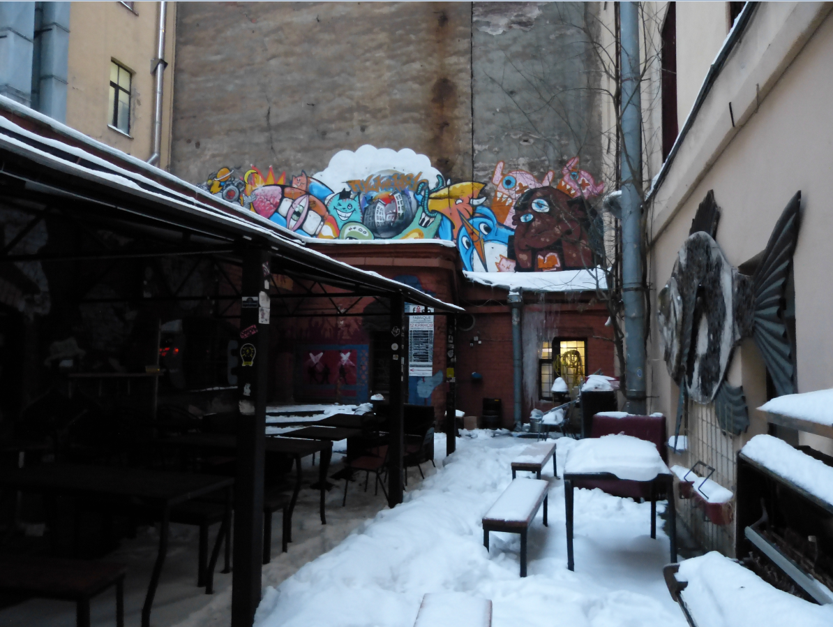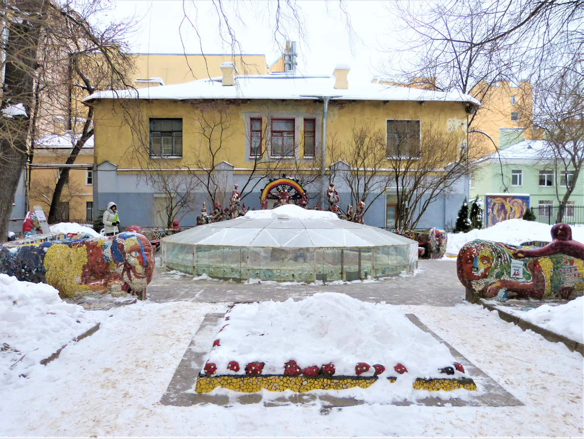 Всё такое яркое, на грани китча. Но оно украшает городскую среду, а не уродует! К тому же находится во дворе, не претендуя на сравнение со строгой питерской архитектурой.