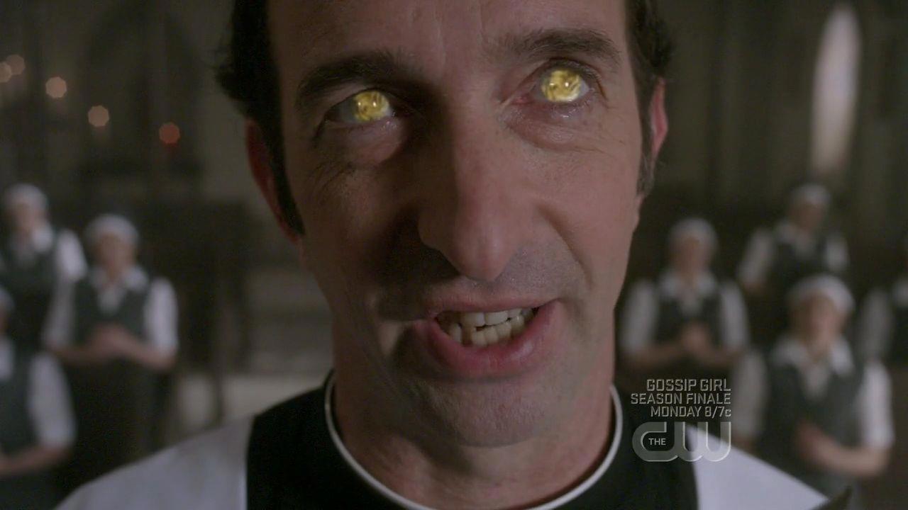 Метатрон. Ангел, которого Бог назначил своим писарем. Благодаря чему он обладает обширными знаниями о том, как работает вселенная. В хорошем исполнении из него получился бы аналог Мориарти, от мира Сверхъестественного. Но в итоге мы видим самого жалкого главгада во всем сериале. Бомжеватая внешность в купе с комичной актерской игрой не дает даже на долю секунды попытаться почувствовать страх перед его образом.