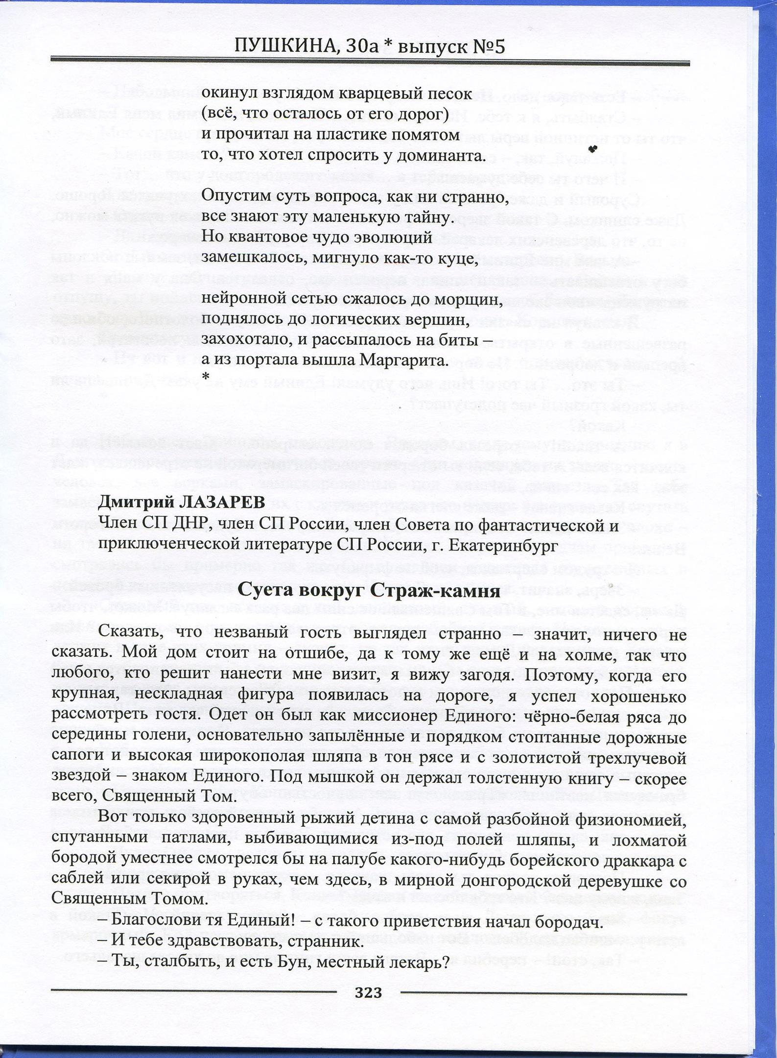 Автор: Лазарев ДмитрийЛадно, никуда не денешься, пришло время литературных итогов 2021 года. Неоднозначный это был год. С одной стороны, вышли два «сталкерских» романа – «Топь» и «Хозяин Топи» из цикла «Зона: перезагрузка». Последний, кстати, и написан был почти целиком в этом году. Написан и еще один - «Создатель чудовищ», который планировался как завершающий, но оказалось, что не так: берусь за его продолжение - «Операция «Альфа». Написано несколько рассказов, один из них «Суета вокруг Страж-камня» вышел в сборнике-альманахе союза писателей ДНР «Пушкина 30а», еще один, «Многоразовый мессия» - в сборнике «Фантастика без границ. Запределье». Рассказ «Производственная необходимость» отобран в сборник «Светит путеводная звезда», который выйдет уже в следующем году. Рассказ «Талисман кошачьего бога» попал в предварительный список шестого сезона «Модель для сборки» «Кражи галактики» и, если ничего не изменится, будет озвучен Владом Коппом. Но это тоже, видимо, не в этом году.