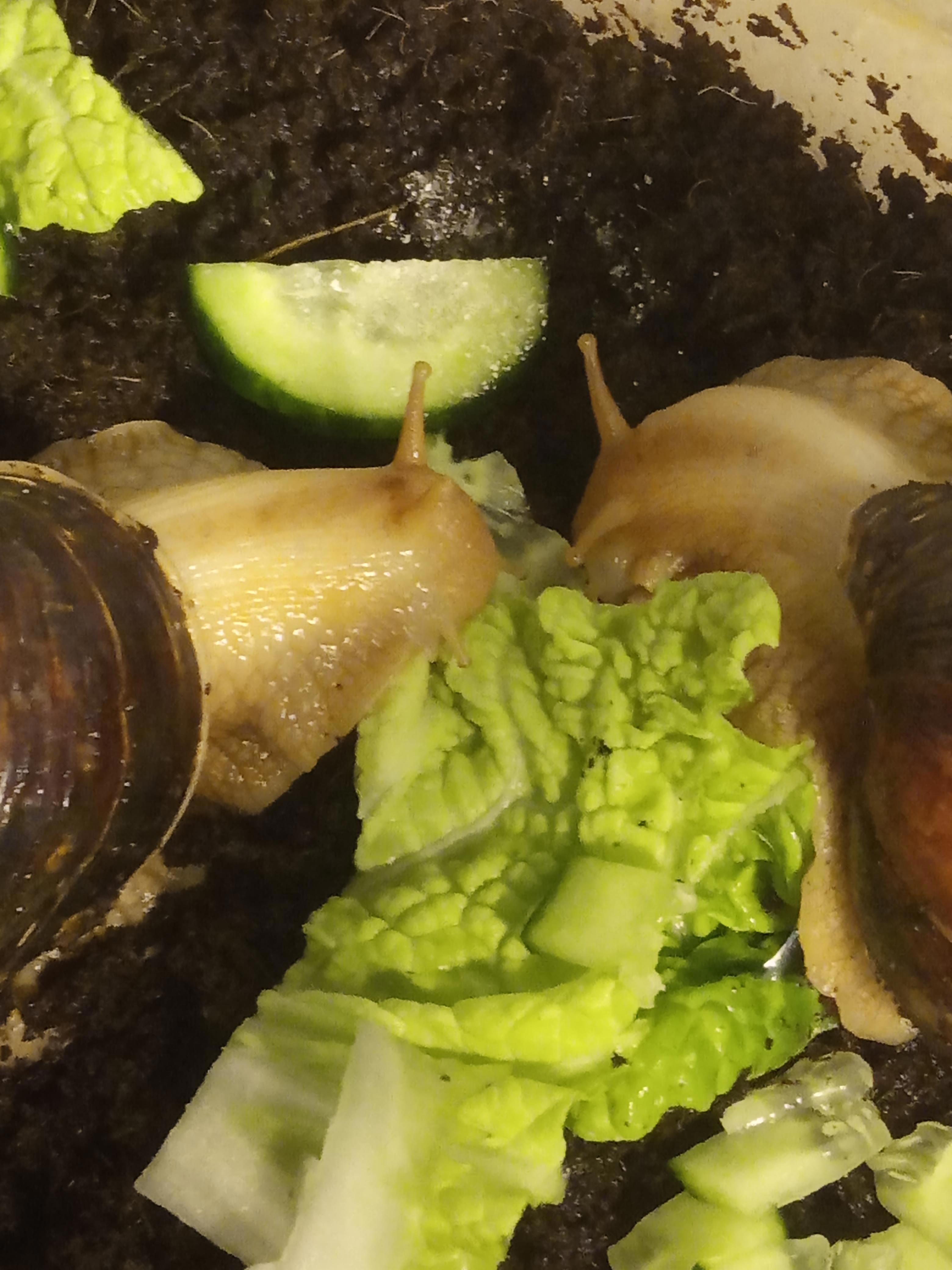 Ещё теперь у меня живут архахатины (хаха), мне их сдали на время. Я потом нескольких мелких себе оставлю, будут мои