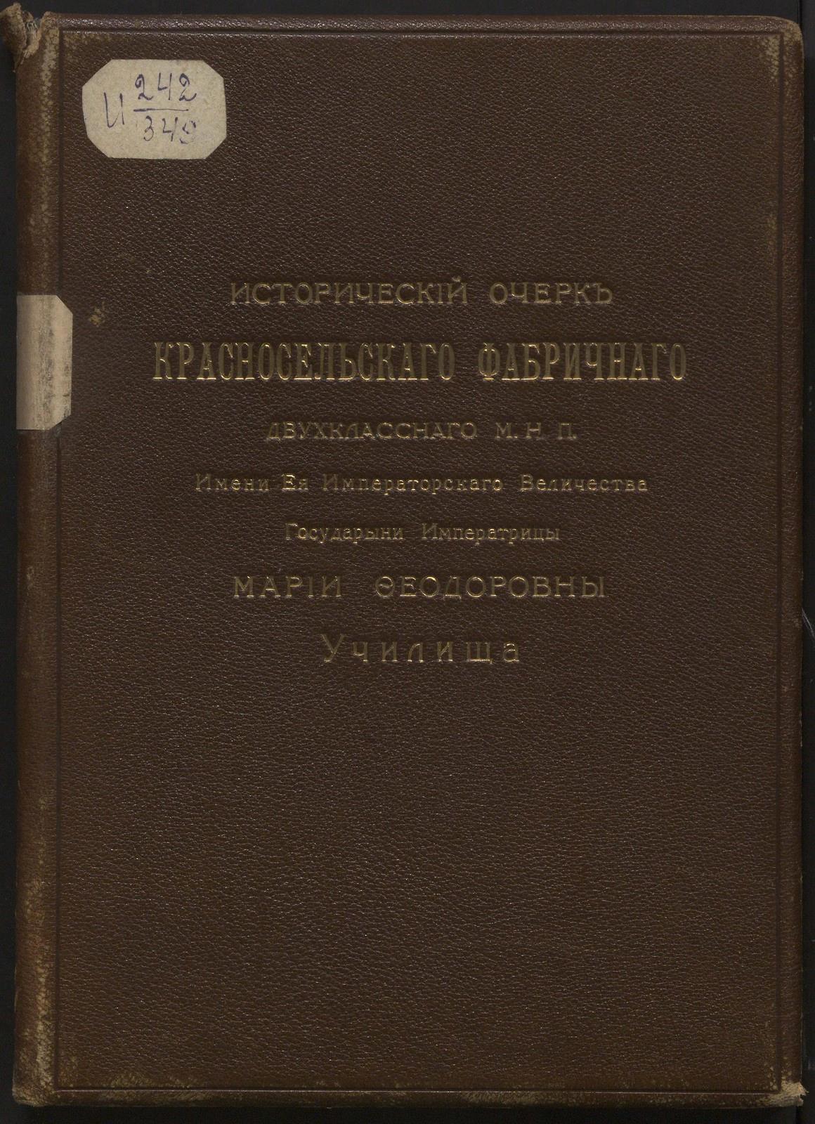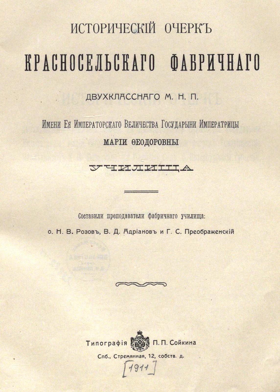 1911. Исторический очерк Красносельского фабричного двухклассного МНП училища.