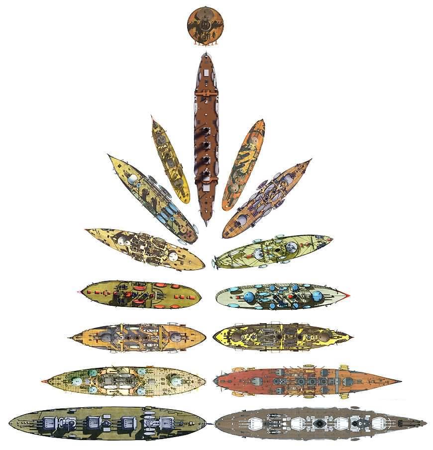 Пусть эта ёлочка и не очень нарядная, зато если среди вас есть любители военно-морской истории, вы можете налить себе порцию любимого напитка и хорошо провести некоторое время над увлекательным занятием: узнаванием верхних проекций линкоров, эскадренных броненосцев, броненосцев и крейсеров Российского императорского флота!