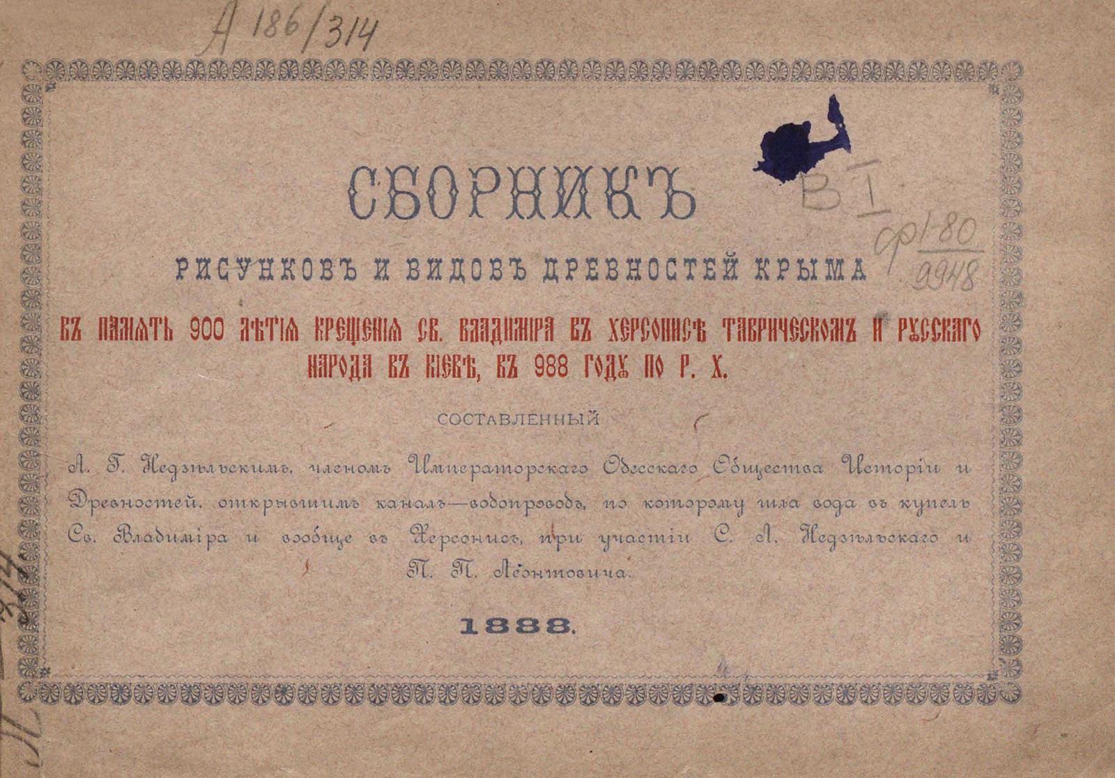 1888. Сборник рисунков и видов древностей Крыма в память 900-летия крещения Св.Владимира в Херсонесе