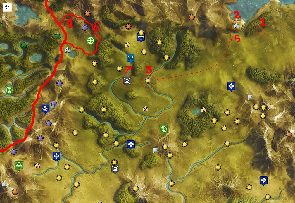 4) Длинная красная черта - границы Ироллана, королевства эльфов.