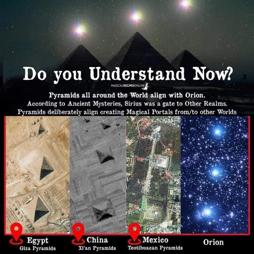 Теперь вы понимаете? Пирамиды во всем мире выровнены с поясом Ориона в созвездии Ориона. Светимость звезд соответствует их размерам.