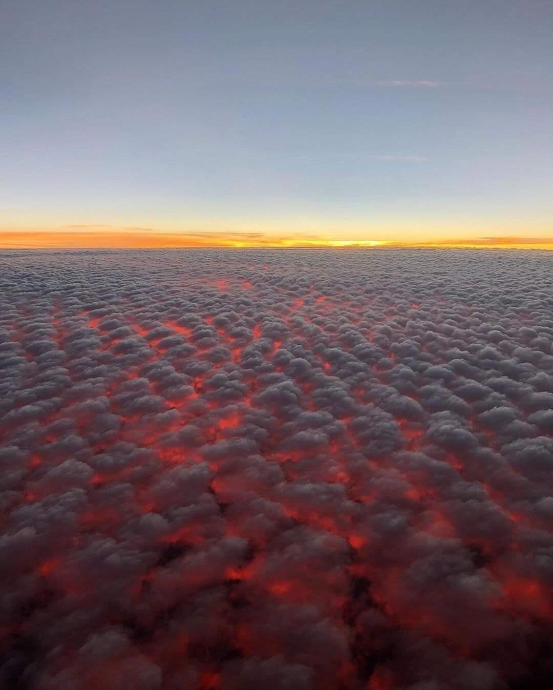 Облака над Гаваями. На горизонте закат. Это создает эффект огненных облаков.