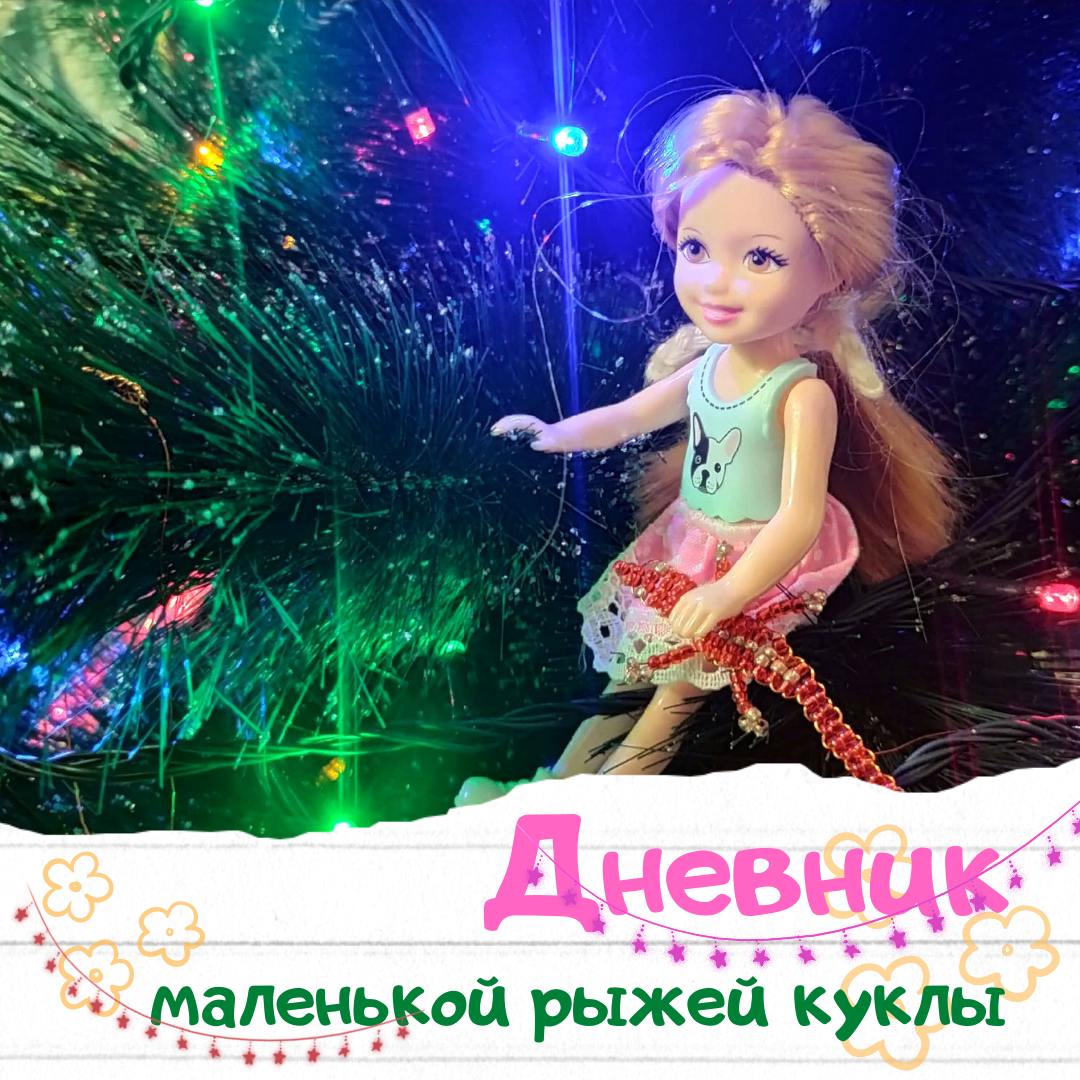Вечером кукла выгуливает питомцев по праздничной ёлке и чувствует себя совершенно счастливой.