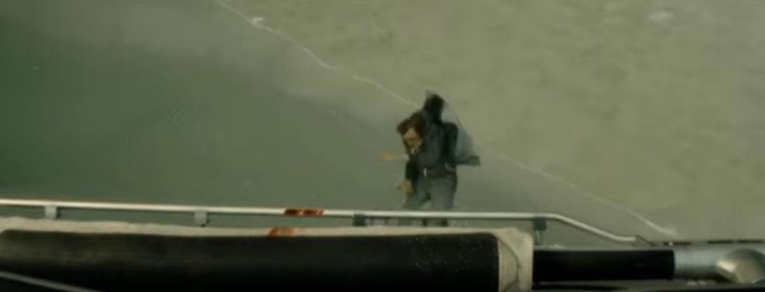 Задлер висит на раме шасси вертолета и вот-вот сорвется, полетит вниз. Это - смерть. Смотрите...