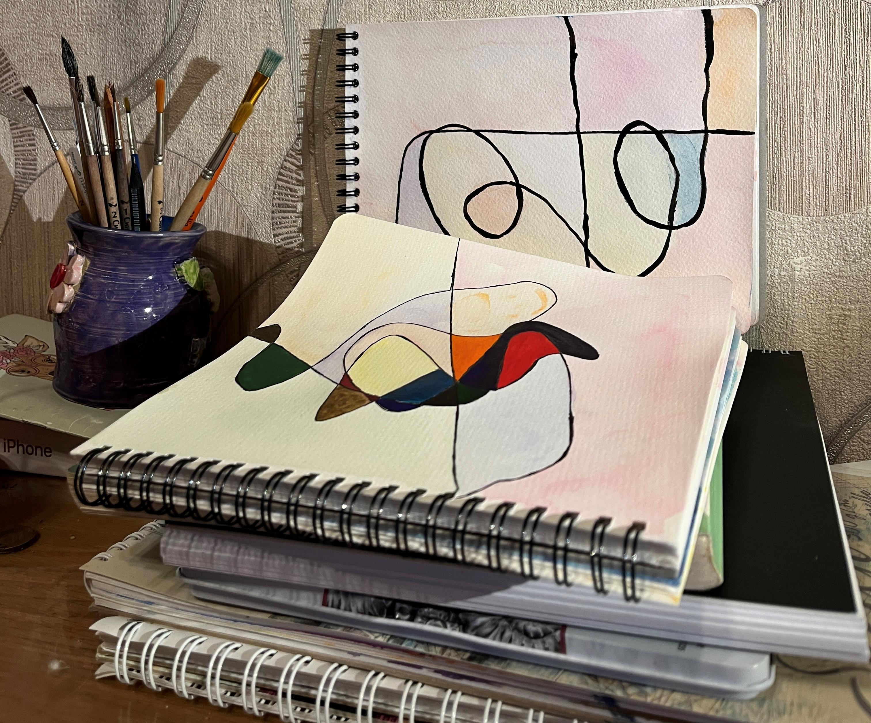 Я попробовала метод автоматического рисования (эскиз делала с закрытыми глазами, красила уже с открытыми, но стараясь не думать).