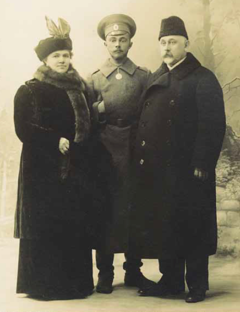 2 ноября, утром, в 11 часов поехали к Яше, 1–й офицерский лазарет, [неразб.] улица, дом во дворе здания, 4 этаж, чистота и порядок. Пришли, Яша лежит один в чистенькой и светлой комнате, кровать налево, умывальник, шкаф с зеркалом для одежды и белья. Вошли, он веселый, поцеловались. Он говорит: .Папочка, садитесь, мамочка, садитесь. Вот я и ранен.. Стал нам рассказывать. Слова Яши: