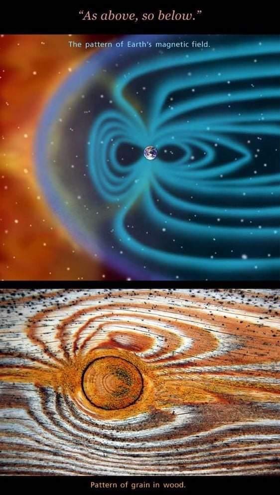 Вот пример подобие внешнего вида магнитного поля Земли и Вида текстуры дерева.