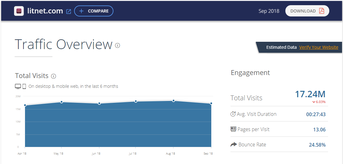 Посещамость ЛН (https://www.similarweb.com/website/litnet.com)
