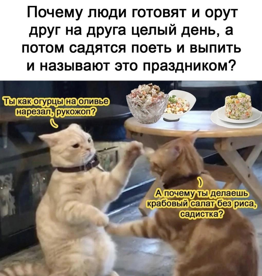 Автор: Аталина АвантажВот снова нарубали салатов. В доме — стойкий хвойный-мандариновый аромат и атмосфера новогоднего праздника. А в галерее смартфона собралась большая коллекция подходящих мемчиков. Спешу поделиться настроением: