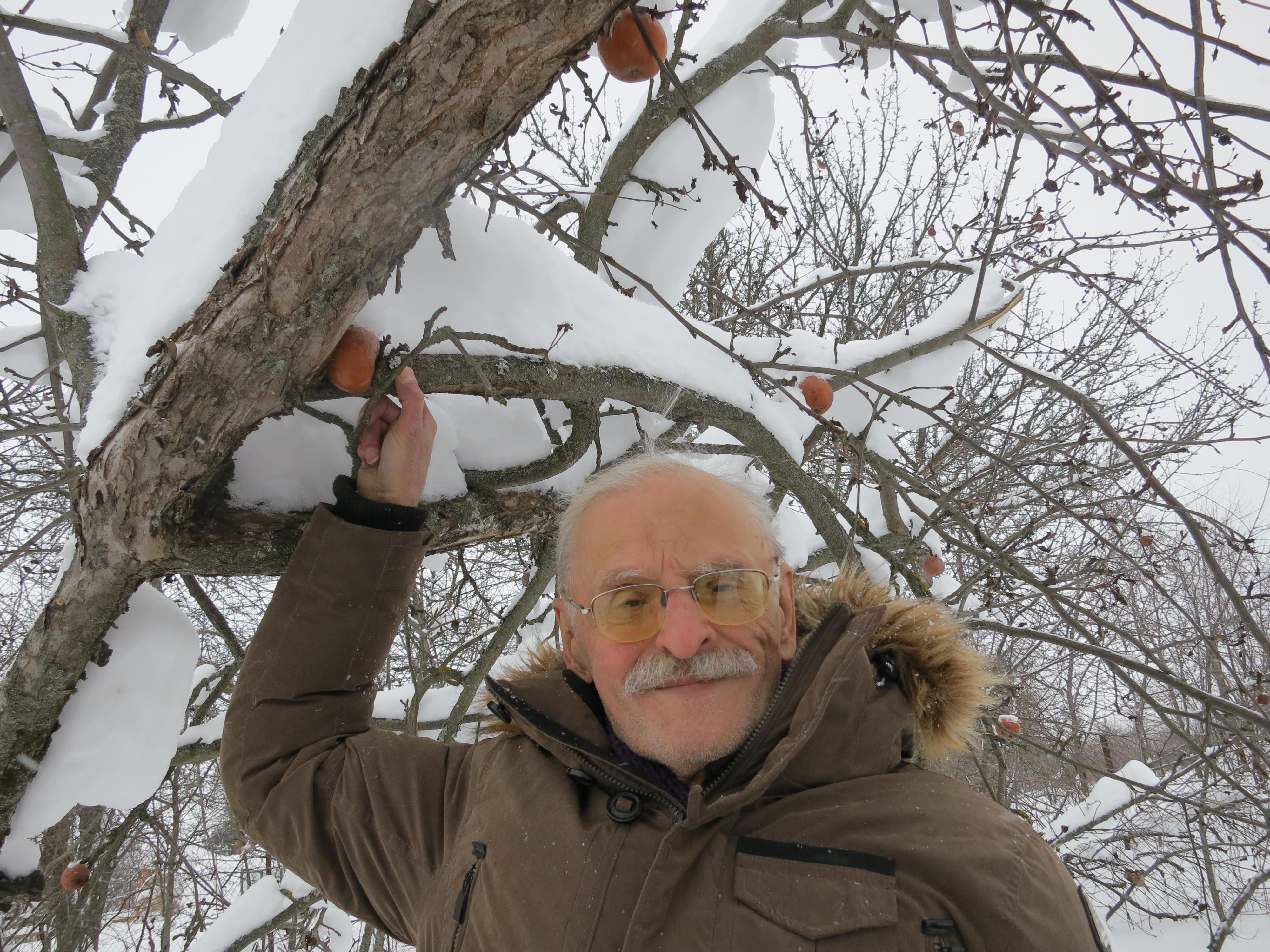 Автор: Александр КривенкоДобавлю немного и своего к рождественским темам. Есть неплохой советский еще фильм - "Зимняя вишня". Не помню, показывалась ли там вишня в снегу, но мне как раз увиделись яблоки, оставшиеся на заснеженной яблоне - как будто дерево хотело сохранить их к Рождеству. На вкус не пробовал, но глаз на фоне черных ветвей и белейшего снега порадовали.