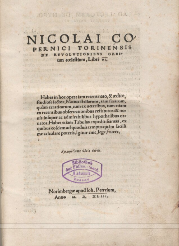 В 1543 году в Нюрнберге была издана книга "О вращении небесных сфер", написанная каноником из польского городка ФромборкаНиколаем Коперником. Книга состояла из 196 страниц крупного формата (in folio) и была отпечатана тиражом 500 экземпляров в типографии Иоганна Петрея.