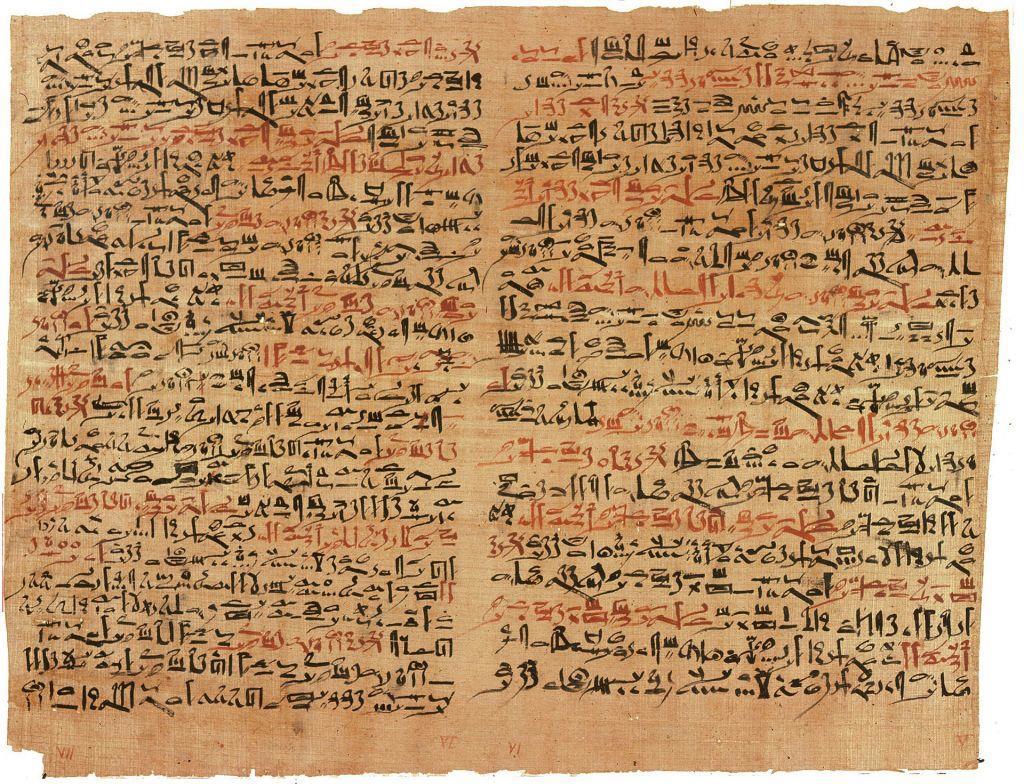 (Самым древним свидетельством применения шифра (около 4000 до н.э.) ученые считают древнеегипетский папирус с перечислением монументов времен фараона Аменемхета II. Безымянный автор видоизменил известные иероглифы, но, скорее всего, не для сокрытия информации, а для более сильного воздействия на читателя. На рисунке фрагмент хирургического папируса, одного из наиболее важных медицинских текстов Древнего Египта)