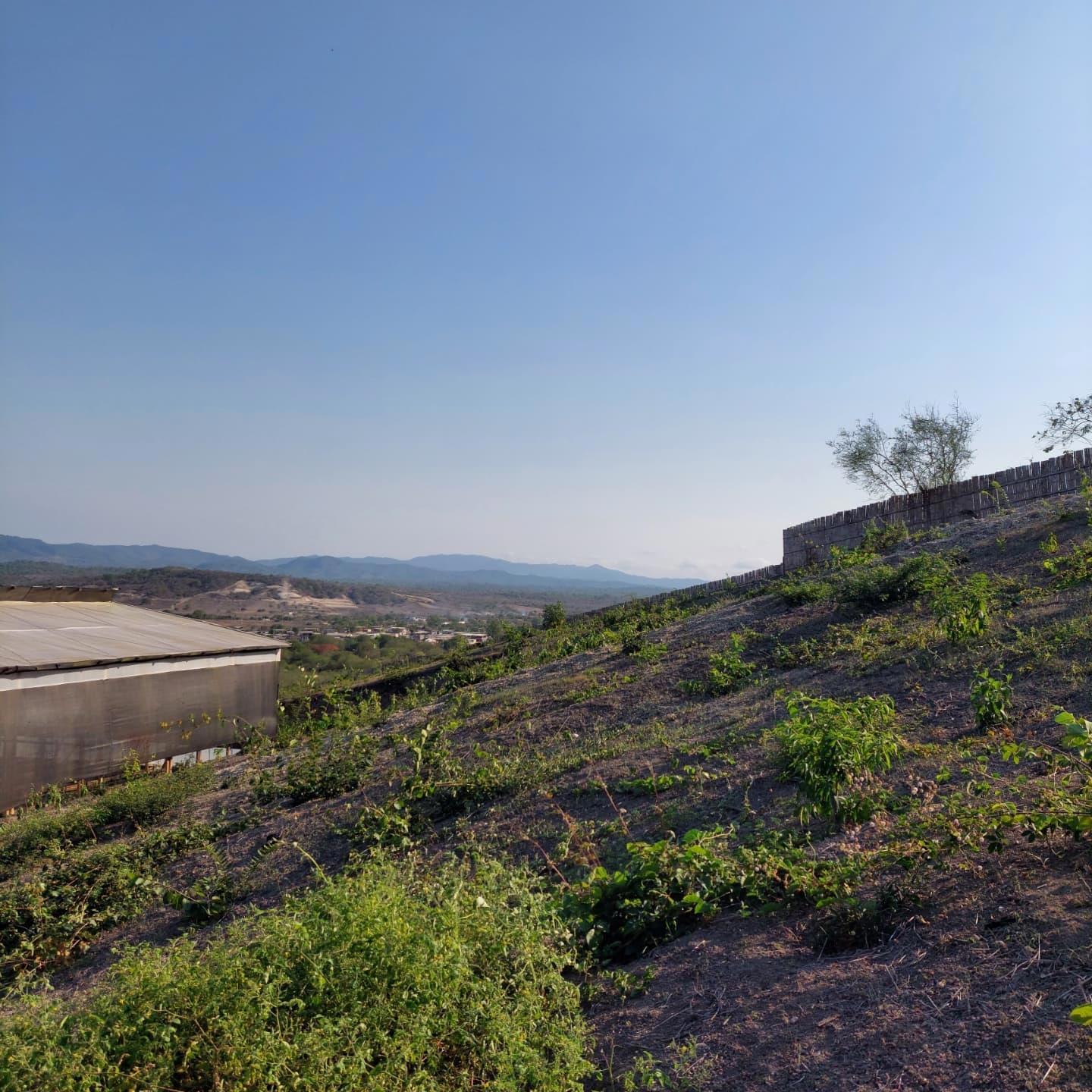 Это я еще толком на гору не взобралась (лень). :) Слева - парник. Небольшой: соток на восемь. Вдали - холмы.