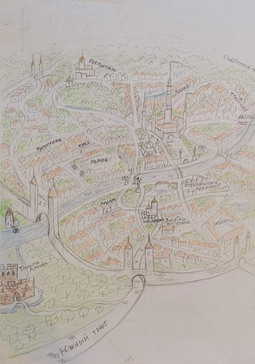 Автор: Итта ЭлиманЯ вчера развлекалась карандашом. Хотела просто карту столицы из головы на бумагу выложить. Но художник убил во мне картографа сразу. И вышло все иначе.