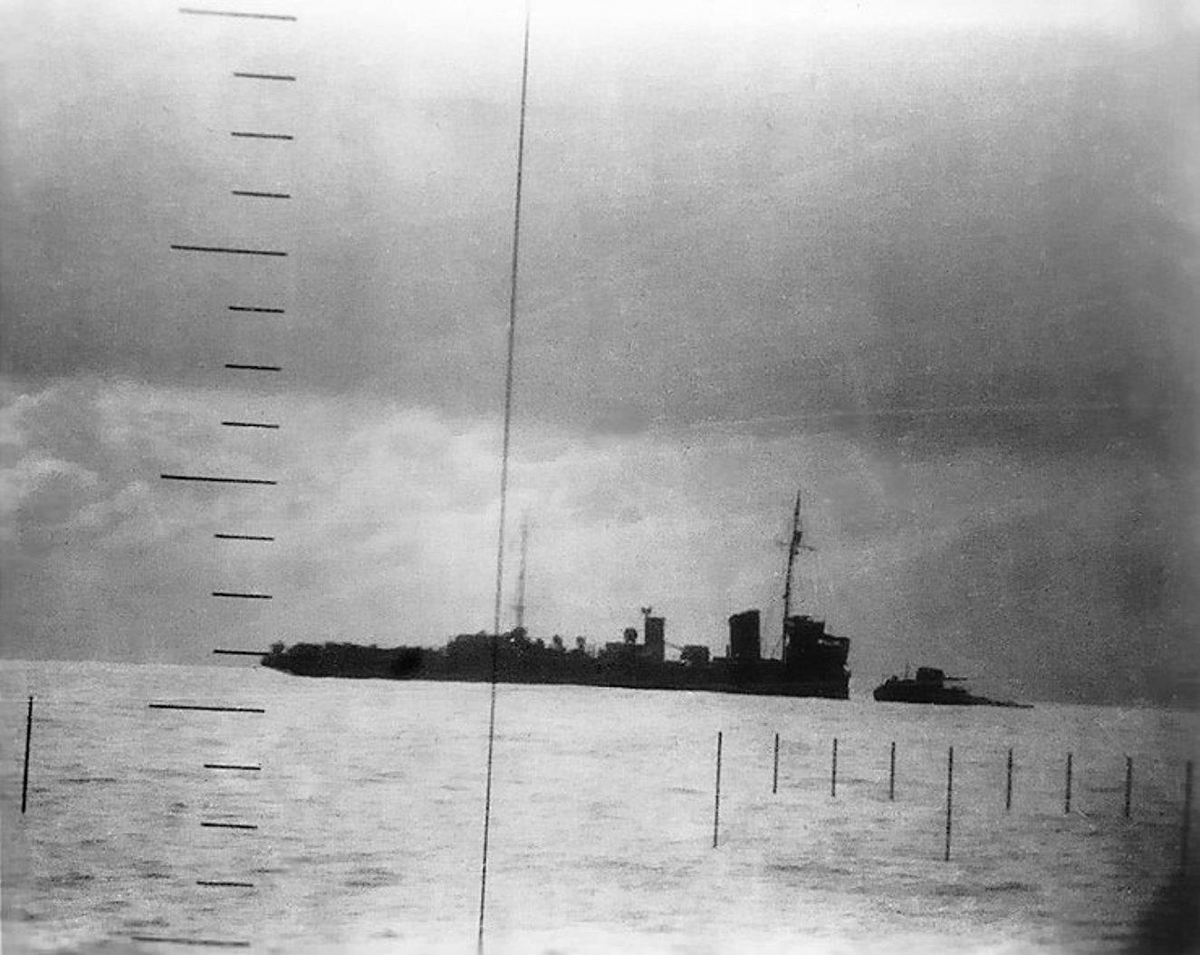 Ехидные америкосы в перископ наблюдают, как тонет японский крейсер. Крейсер переломило.
