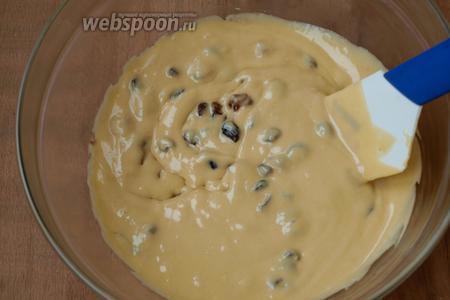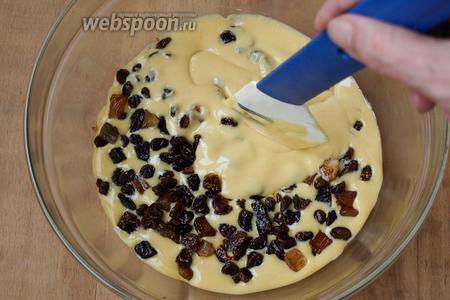 Тесто переливаем в миску, добавляем остывшие сухофрукты.