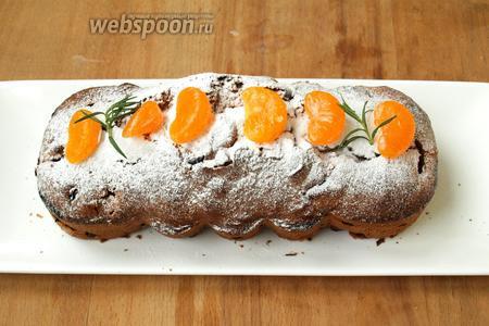 Остывший кекс посыпать сахарной пудрой, украсить дольками мандарина и веточками розмарина. Приятного аппетита!