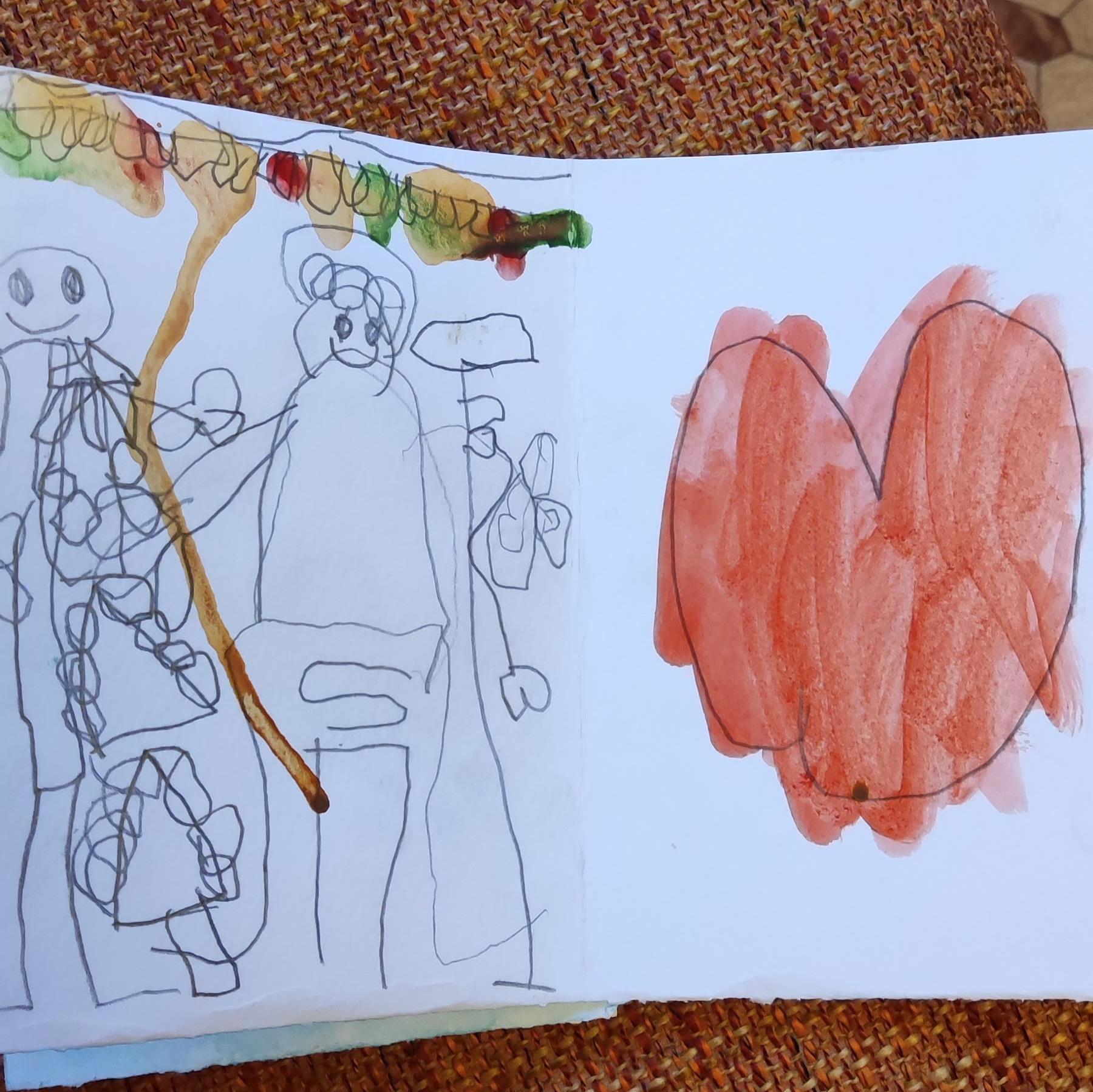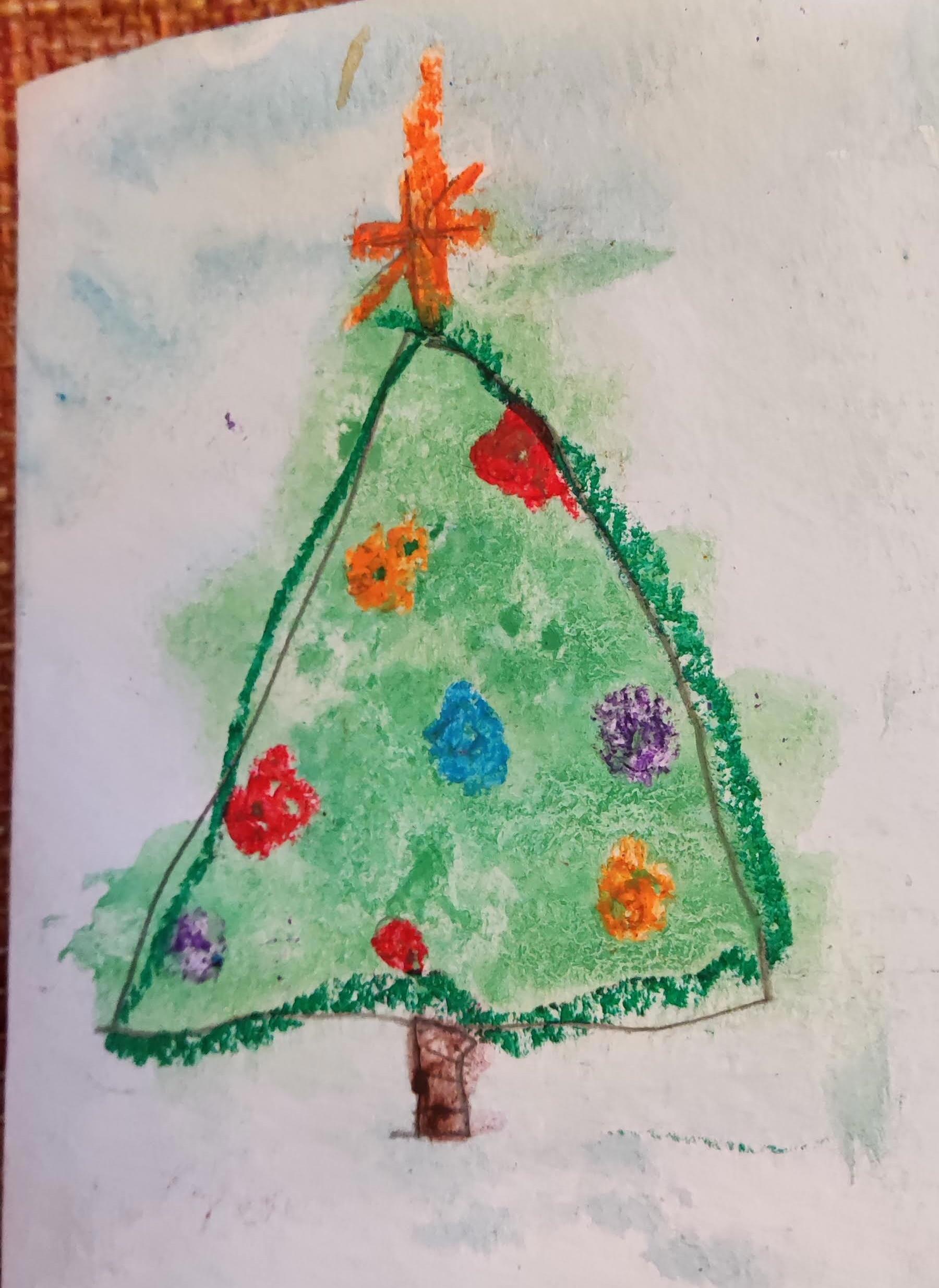 А на Новый год, естественно, всем табором к нам. Малыши, как и положено, тоже стараются, делают подарки. Каждый сделал свою открытку. Артур пока маленький, но очень любвеобильный, поэтому ёлочка и большущее сердце.