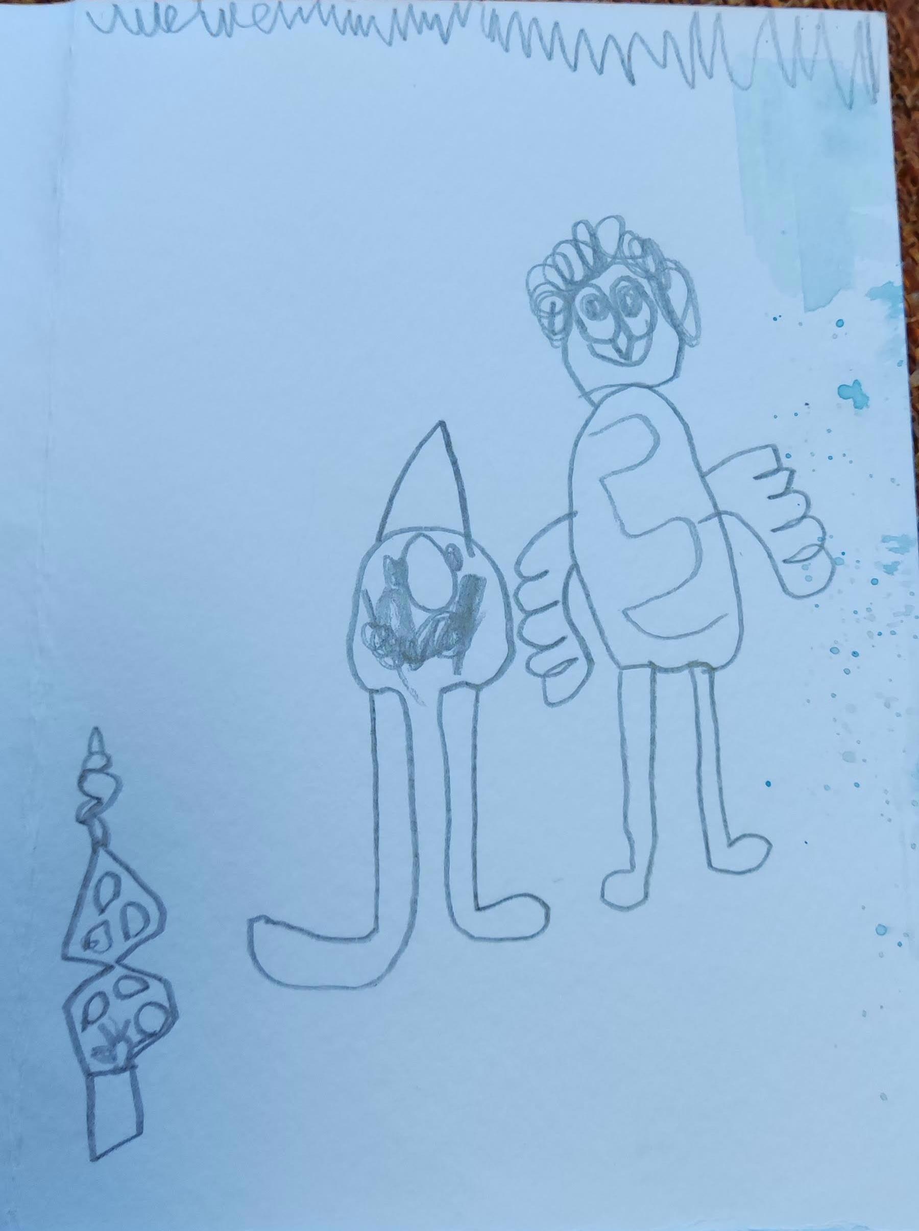 Ёлочка - это очевидно. Фигурка с бородой и в колпачке - дедушка в виде гнома. Почему гном - так решил художник.