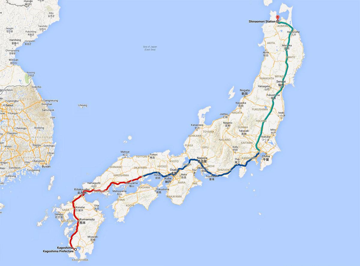 Тут на карте 2,000км железнодорожных путей, которые можно проехать за чуть меньше 11 часов (придётся два раза пересаживаться). То есть, средняя скорость передвижения по системе - 180км/ч, влючая остановки и пересадки.