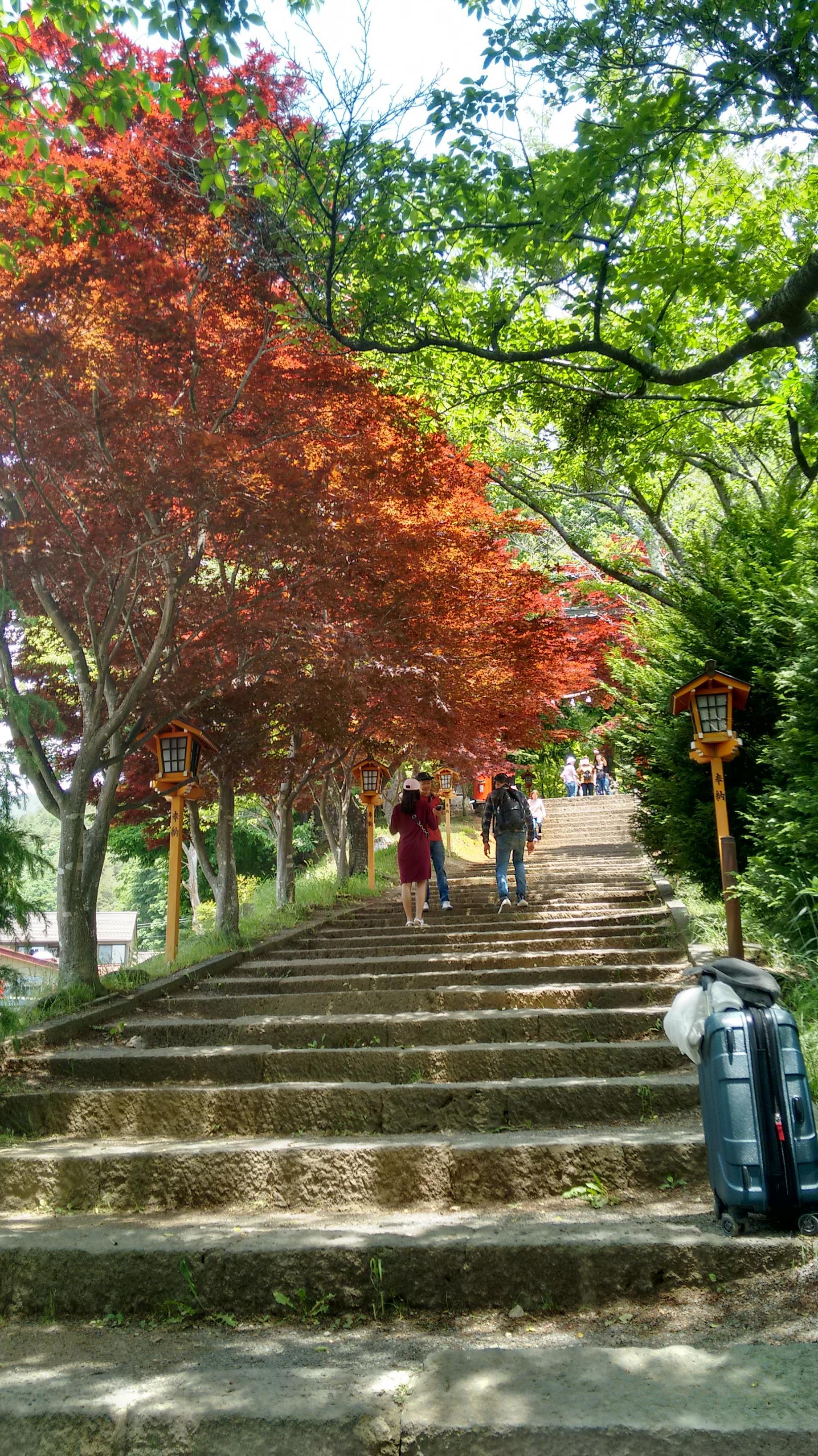 Поднимаясь наверх, иногда надо проходить через тории. Это священные ворота религии Синто, одной их двух основных религий Японии. Об эих религиях и их восхитительной красоты храмах мы поговорим в другой раз.