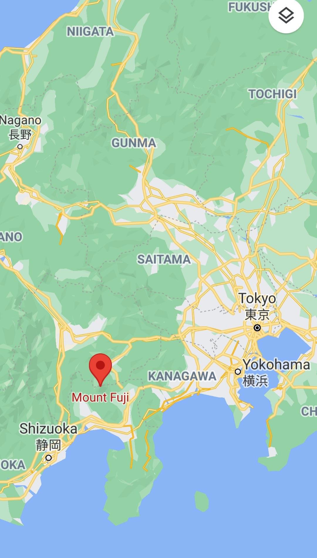 Гора Фудзи на карте Японии
