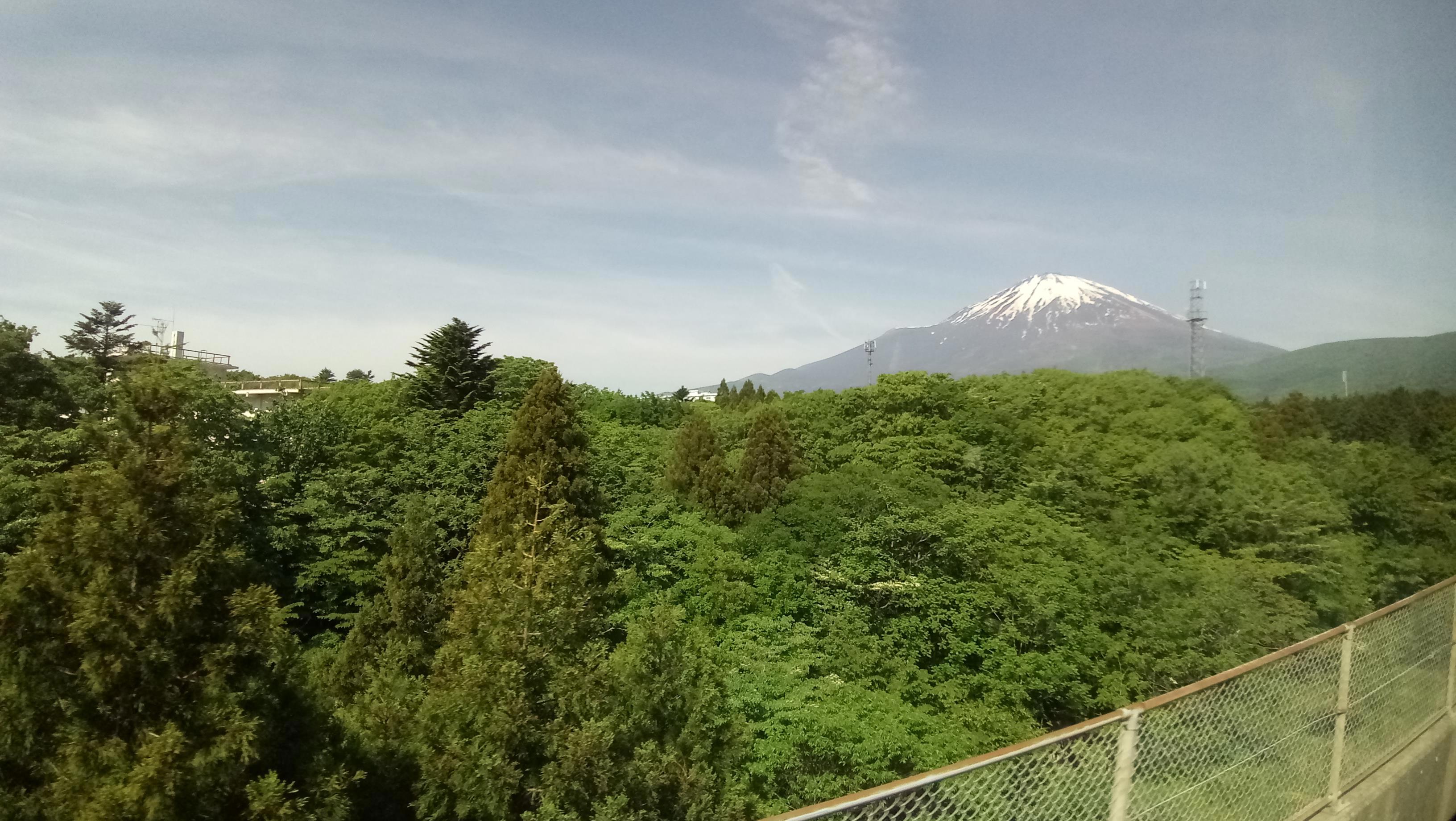 Это вид на Фудзи из окна нашего поезда. Мы пока еще далеко. Потом подъедем поближе.