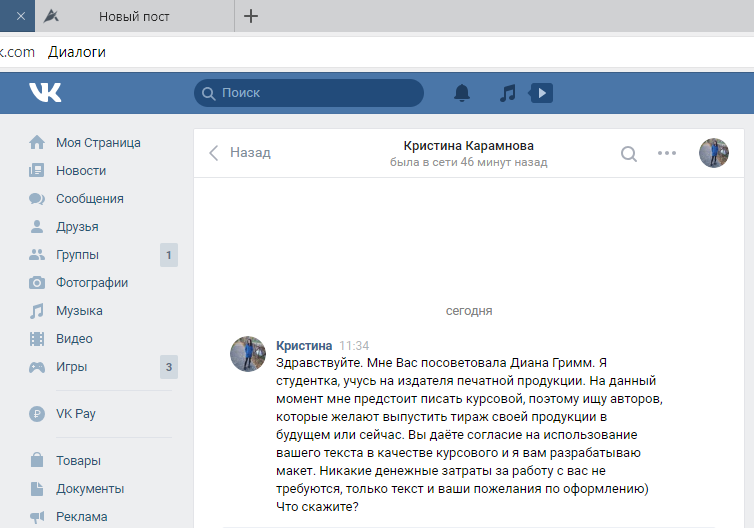 Не поверила ни единому слову этой девушки, потому как обыскала весь Яндекс в поисках конкретного названия кафедры и факультета. Новый способ кражи текстов и выставления его на пиратских сайтах - вот к какому выводу я пришла, когда отсмеялась. Привычка всё проверять сложилась у меня давно. Тем более, после слова "скажите", у меня возникли сомнения еще большие.