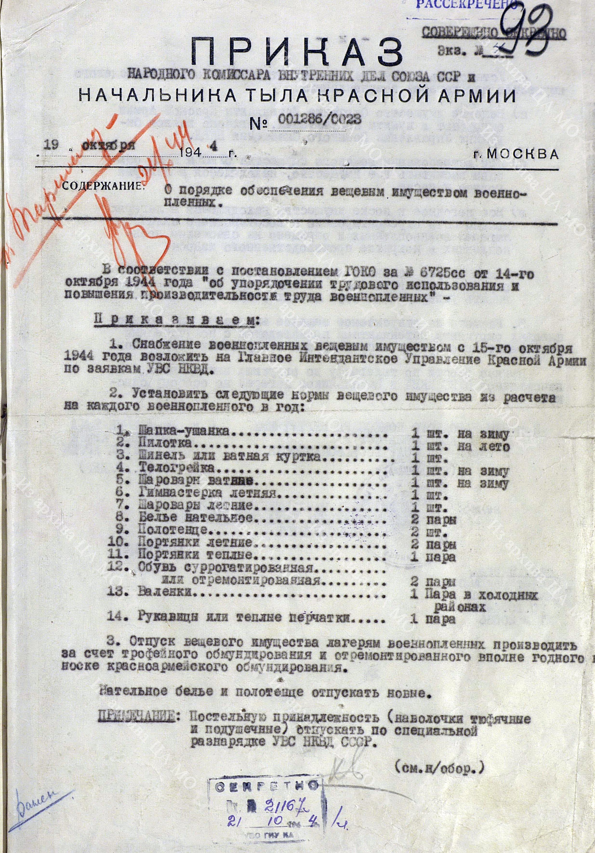 Два документа о том, как в СССР обеспечивали военнопленных