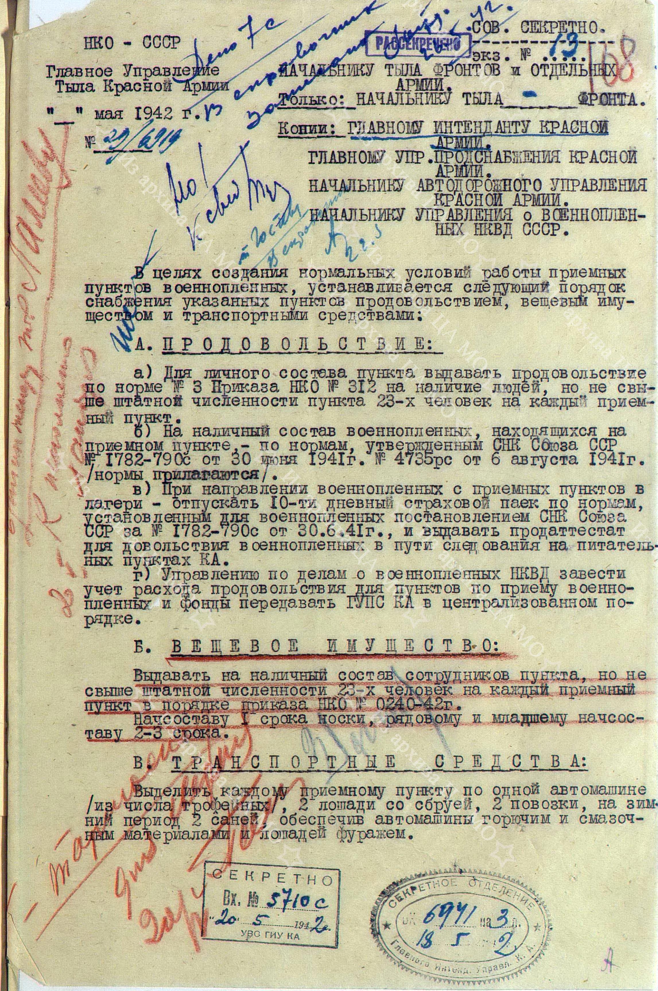 Хотел начать новый год с другой публикации, но так уж получилось, что почитав новый пост уважаемого Николая Берга, вспомнил, что у меня, абсолютно случайно, имеется пара архивных документов, касающихся обеспечения военнопленных из числе гитлеровских войск. Заранее приношу свои извинения за то, что документы публикуются не полностью, не предполагал, что они кому-либо могут пригодиться, а представляемые вашему вниманию электронные копии заказал совершенно случайно.