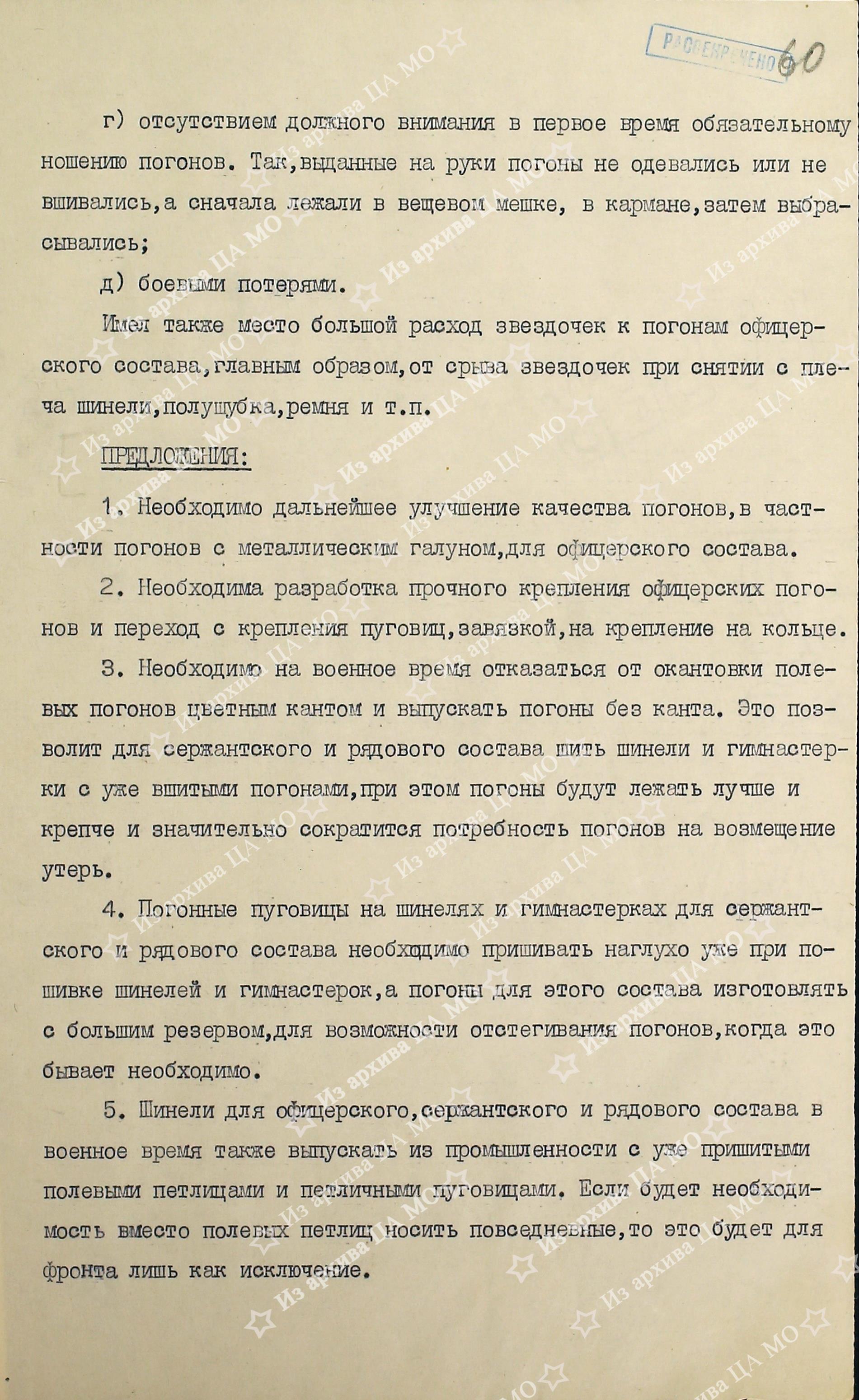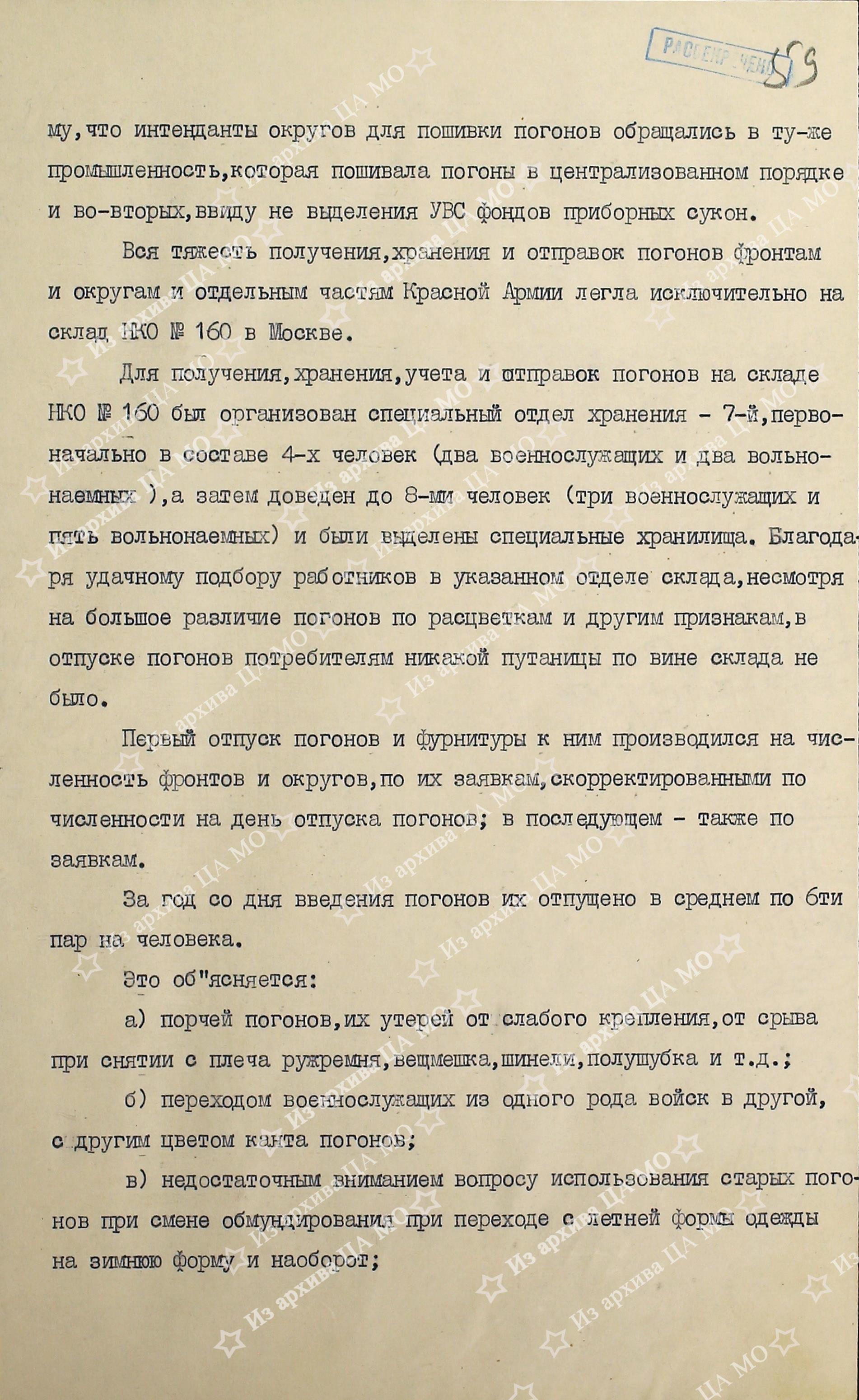 Лучше всего рассказ завершить ещё одним разделом из Отчёта управления вещевого снабжения ГИУ КА, тем боле он полностью посвящён рассказу о новой форме и о новых знаках различия: