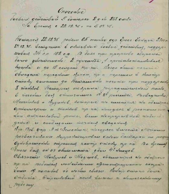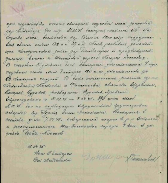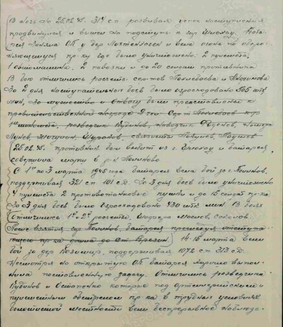 Отчеты о боевых действиях. Дата создания документа: 18.04.1945 г.